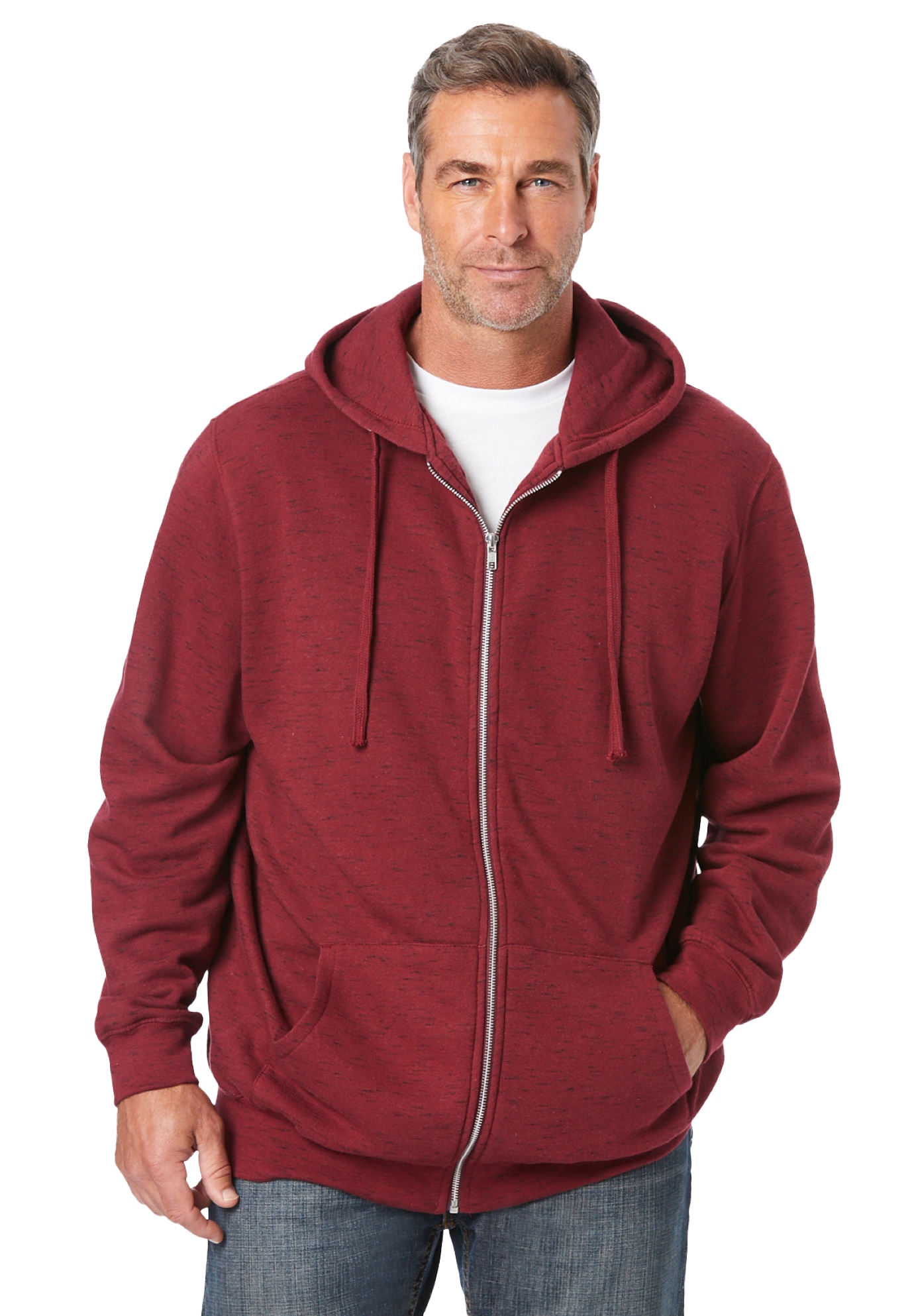 Plus Size Women's Fleece Zip-Front Hoodie by KingSize in Burgundy Marl (Size 8XL) Fleece Jacket