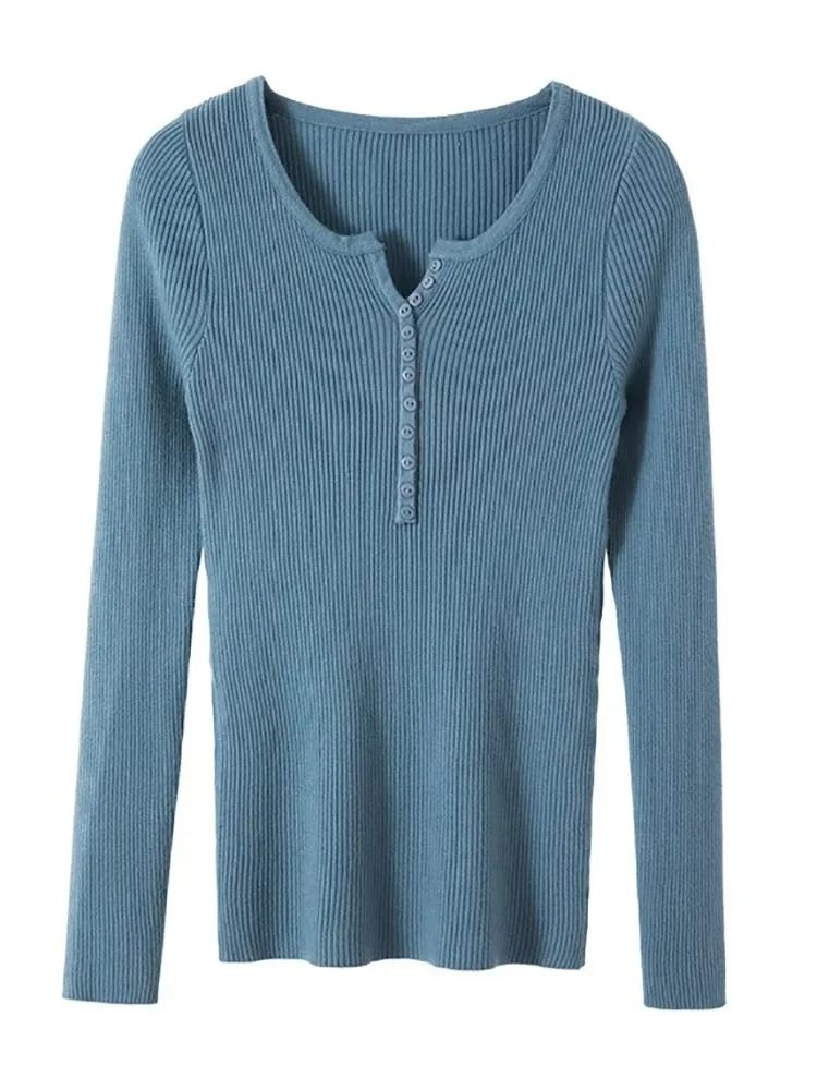 Chic Womens V Neck Knit Sweater Korean Style Button Slim Fit Pullover black one Size