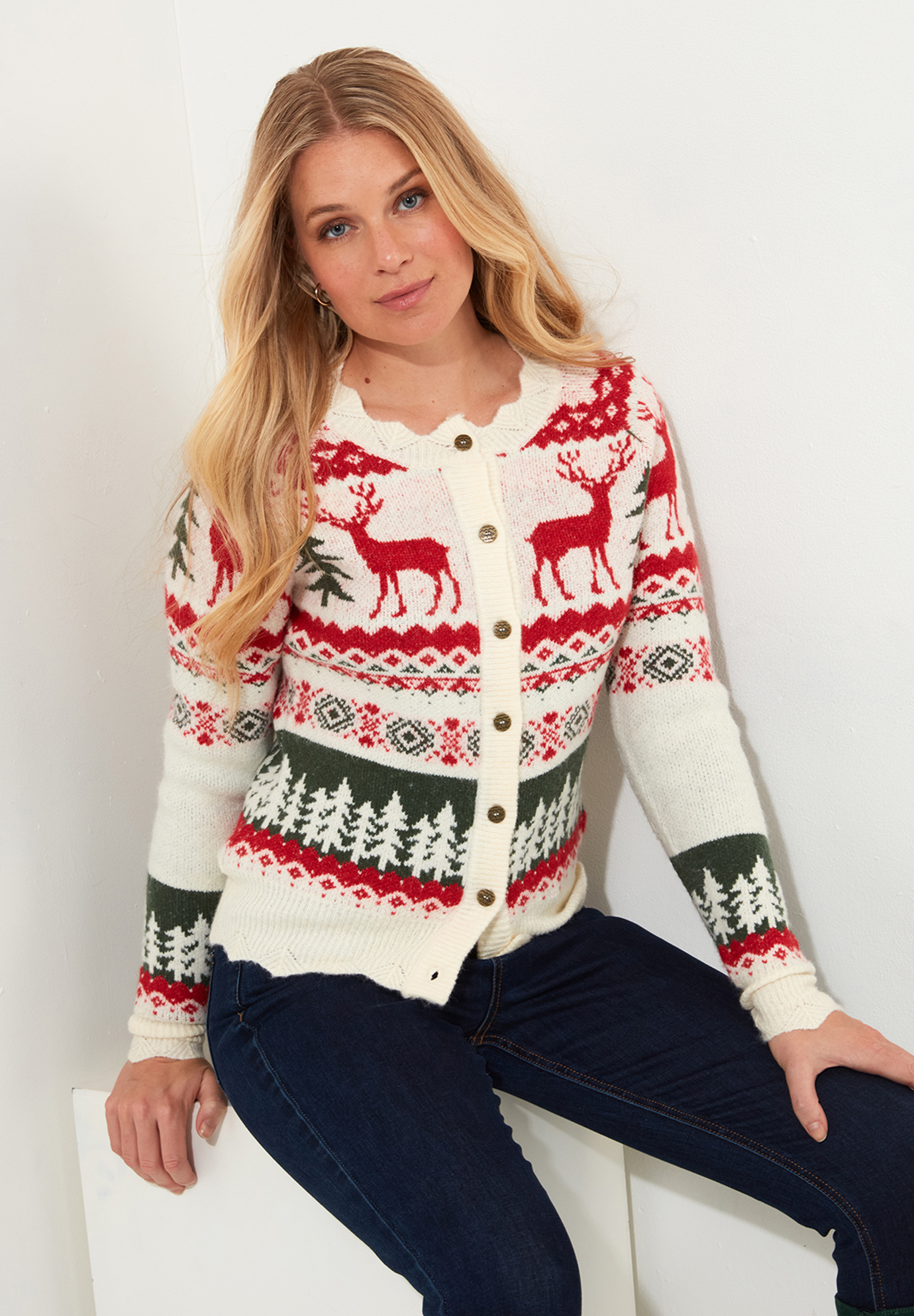 Plus Size Women's Novelty Reindeer Cardigan Sweater by Joe Browns in Festive Fairisle (Size S)