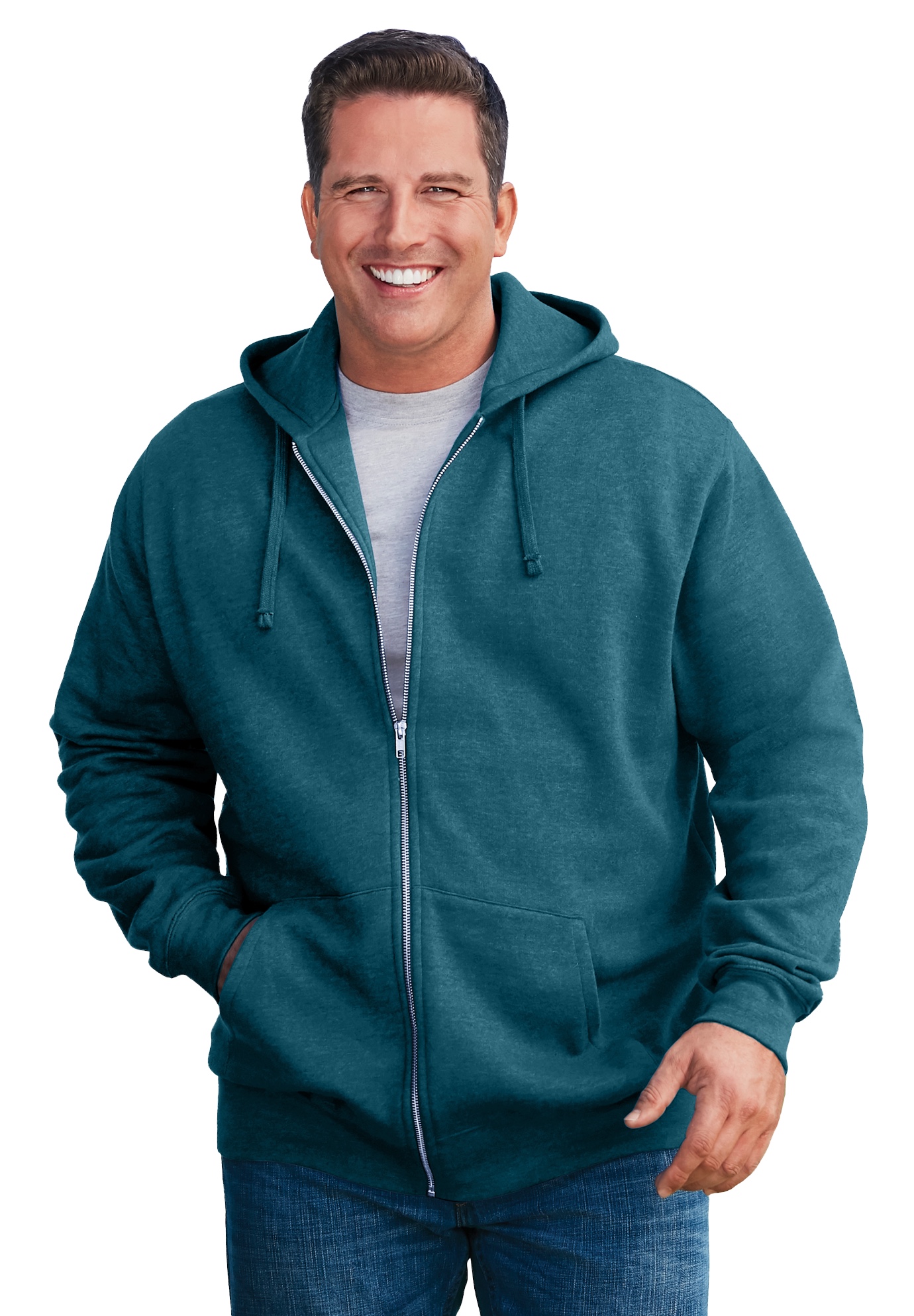 Plus Size Women's Fleece Zip-Front Hoodie by KingSize in Heather Midnight Teal (Size 3XL) Fleece Jacket