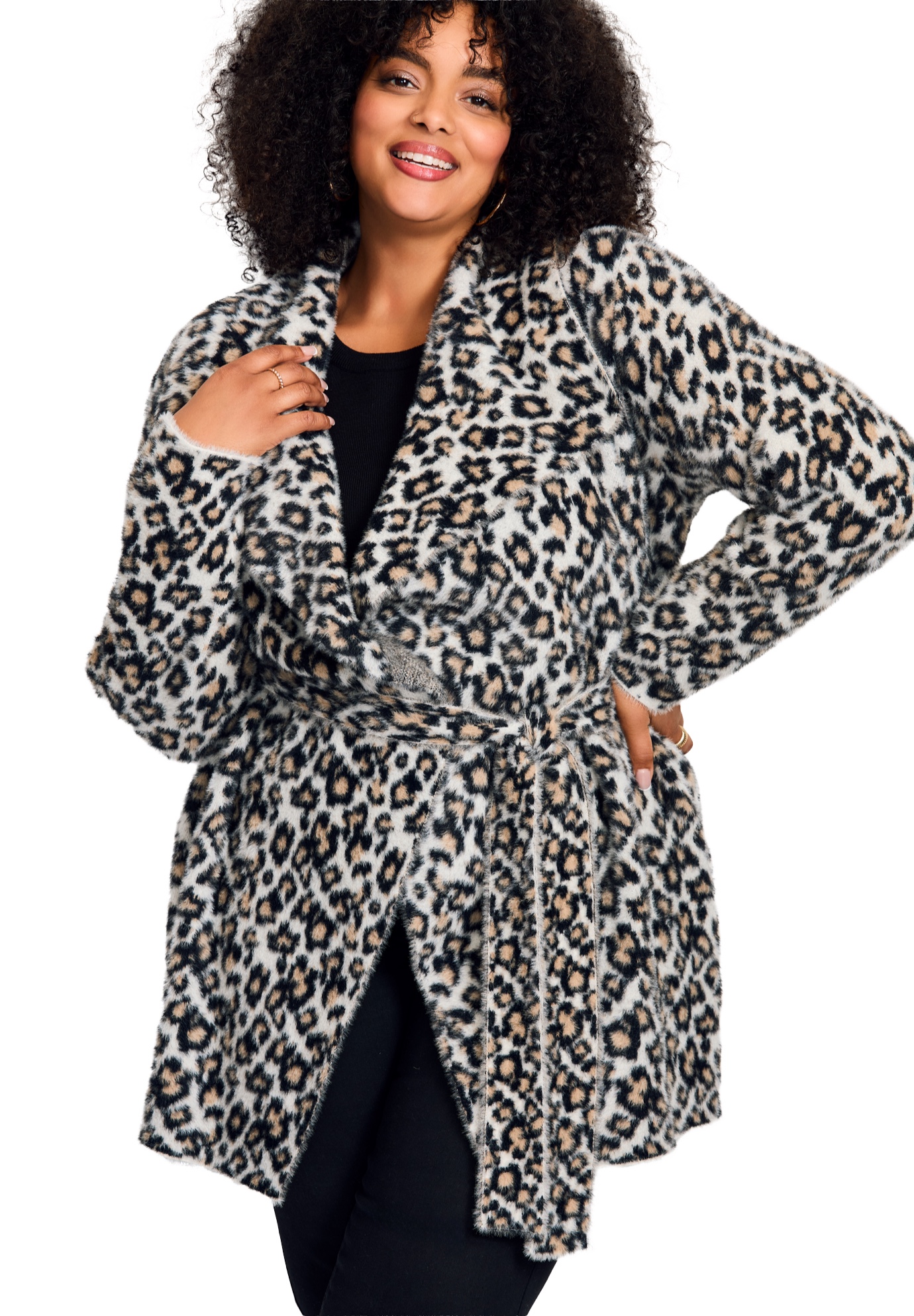 Plus Size Women's Open Front Coatigan by Avenue in Ivory Snow Leopard (Size 26/28)