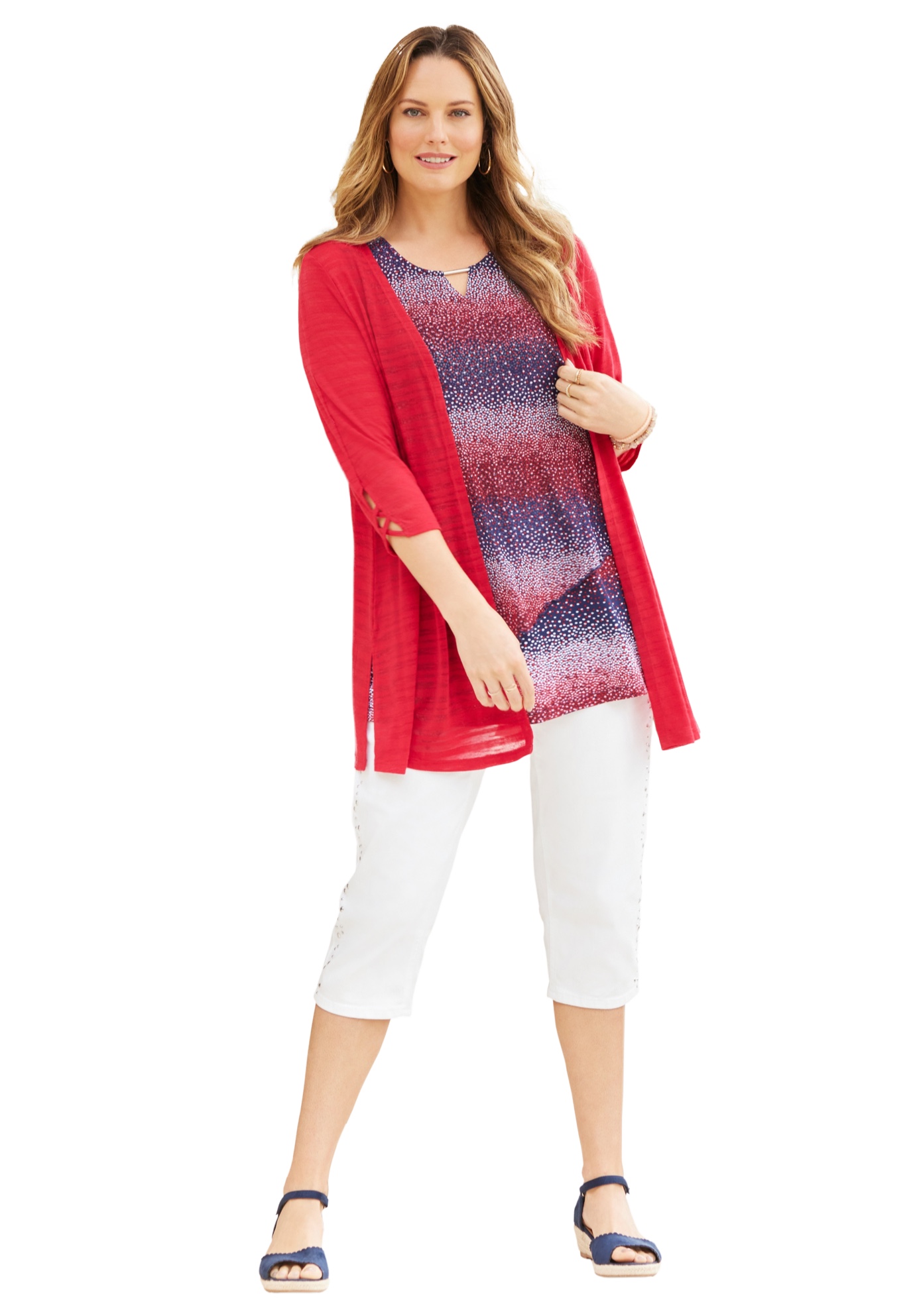 Plus Size Women's Lace-Detailed Cardigan and Tank Set by Roaman's in Berry Twist (Size 26/28)