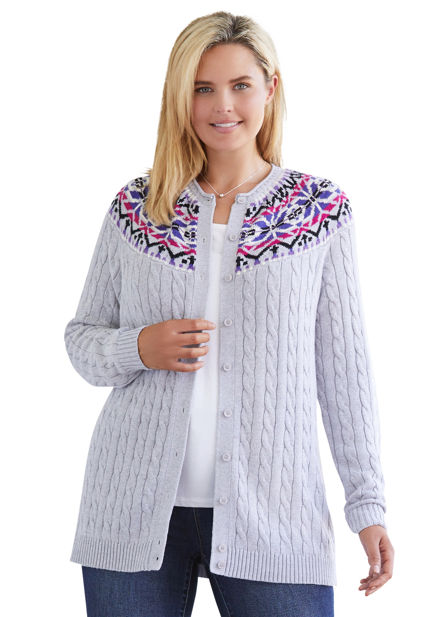 Plus Size Women's Fair Isle Cardigan by Woman Within in Heather Grey Fair Isle Stripe (Size 5X)