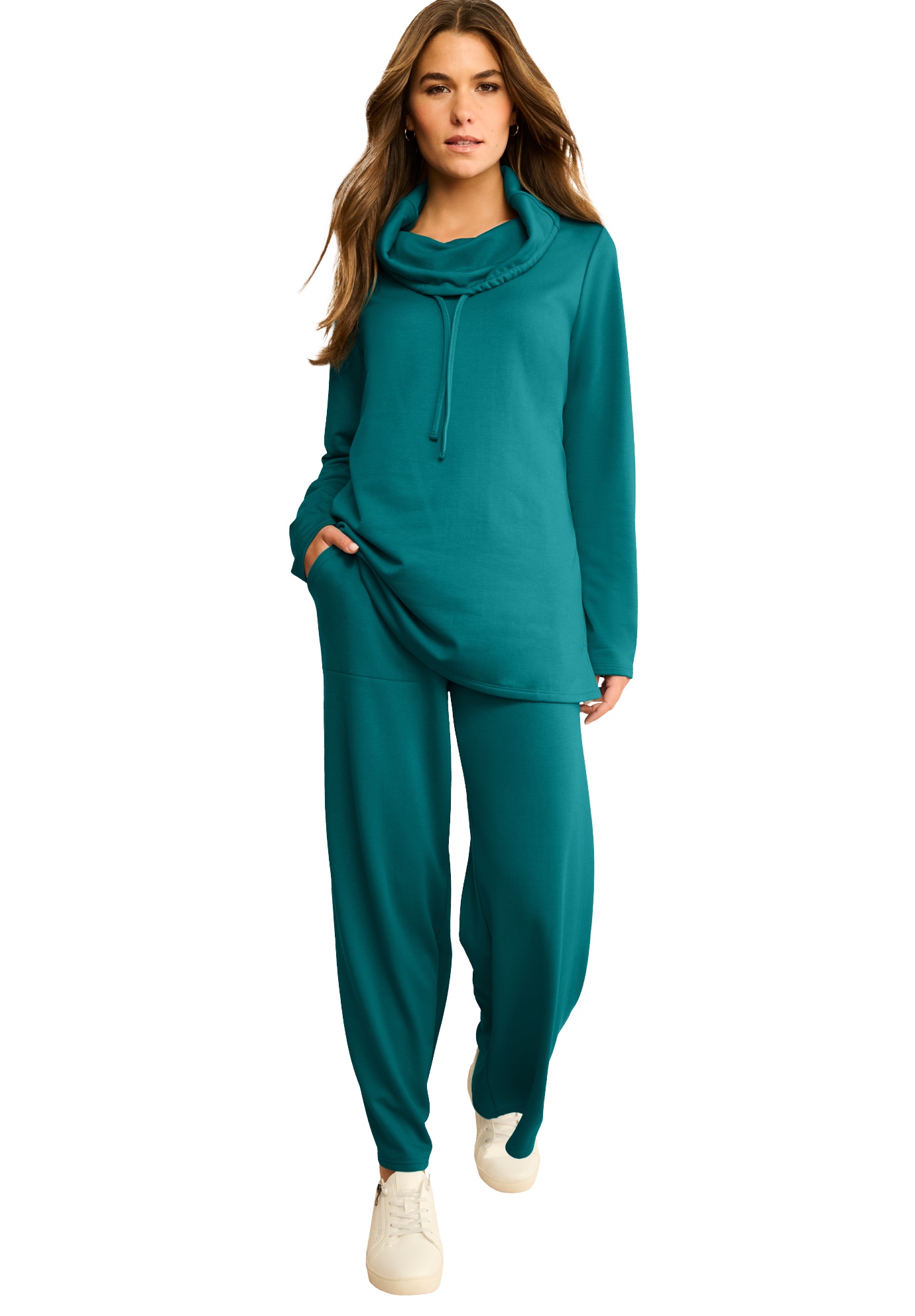 Plus Size Women's Comfort+ Fleece Cowl Neck Sweatshirt by Roaman's in Tropical Teal (Size 34/36)