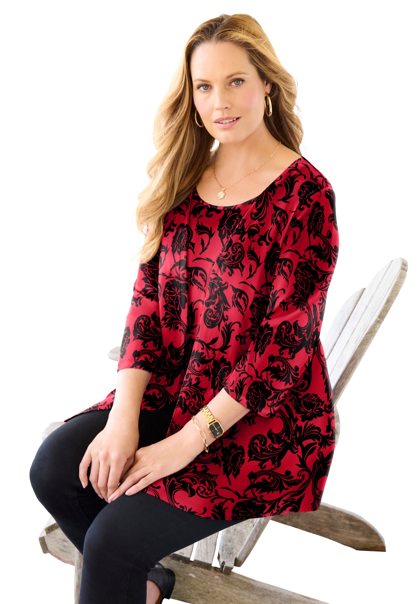 Plus Size Women's Impossibly Soft Cardigan & Tank Duet by Catherines in Classic Red Graphic Scroll (Size 2X)