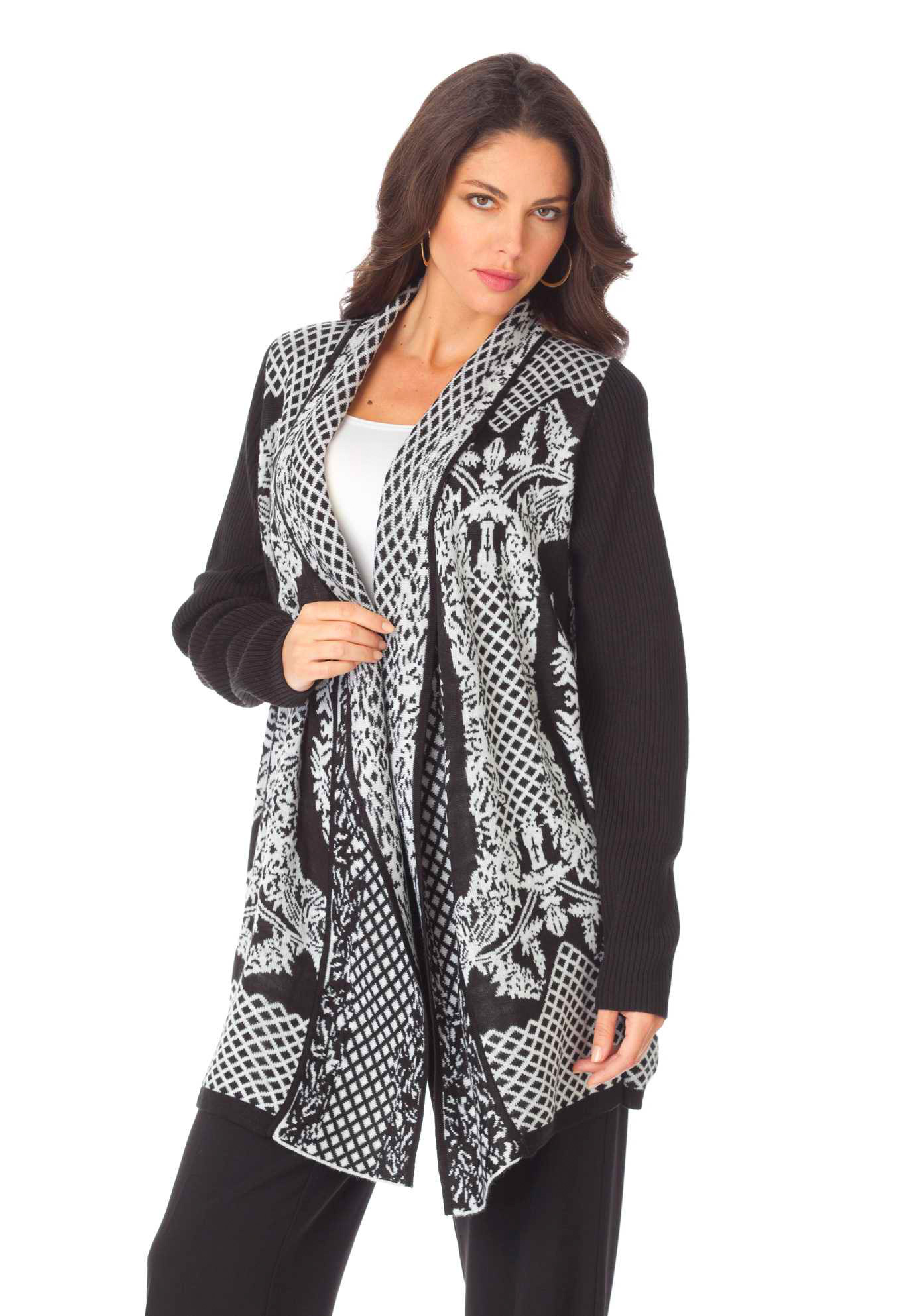 Plus Size Women's Diamond Cage Cardigan Sweater by Roaman's in Black White Damask (Size 38/40)