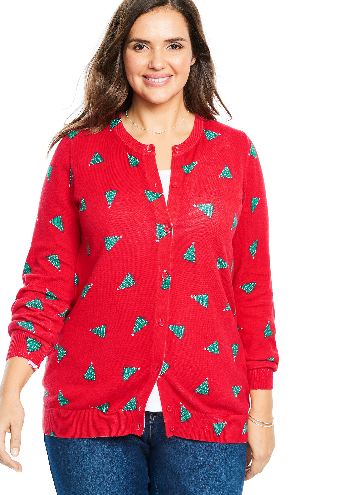 Plus Size Women's Perfect Long-Sleeve Cardigan by Woman Within in Vivid Red Trees (Size S) Sweater
