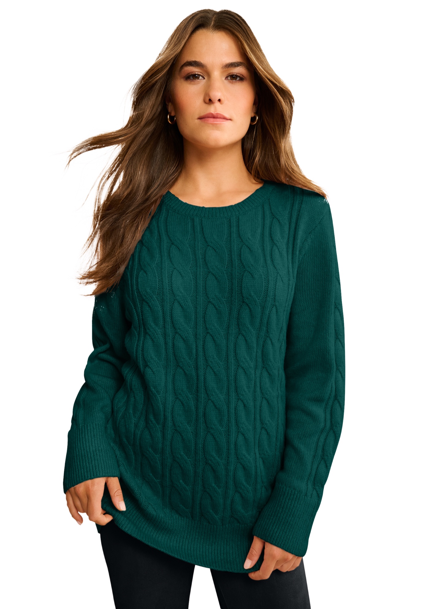 Plus Size Women's Plus Size Cozy Cable Sweater Tunic by Roaman's in Emerald Green (Size M)