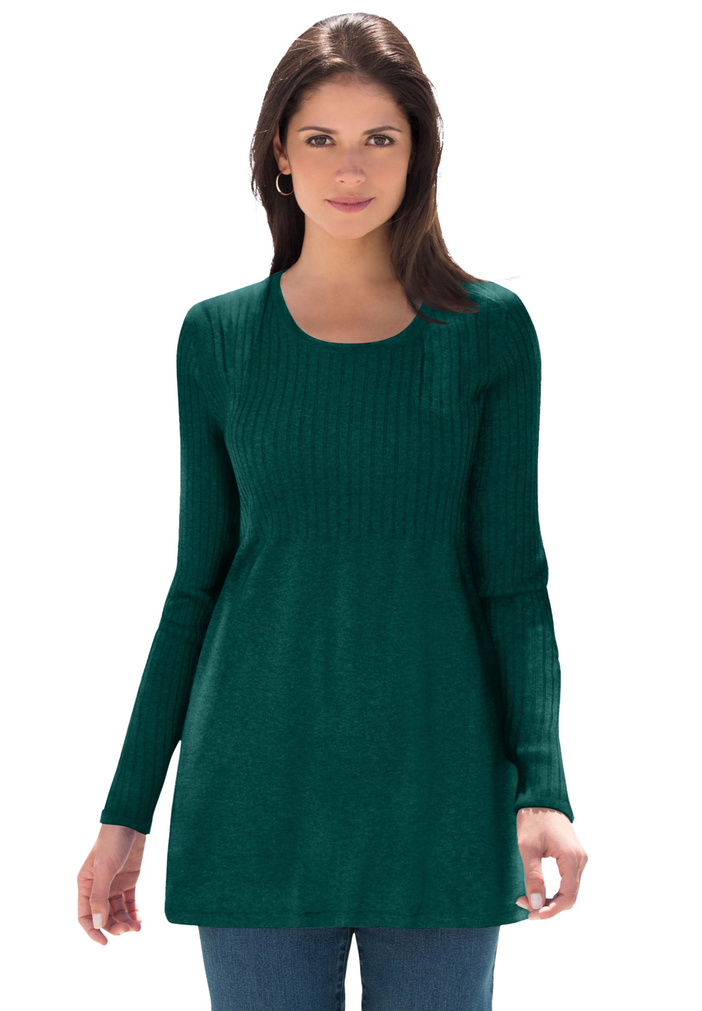 Plus Size Women's Ribbed Baby Doll Tunic Sweater by Jessica London in Emerald Green (Size M)