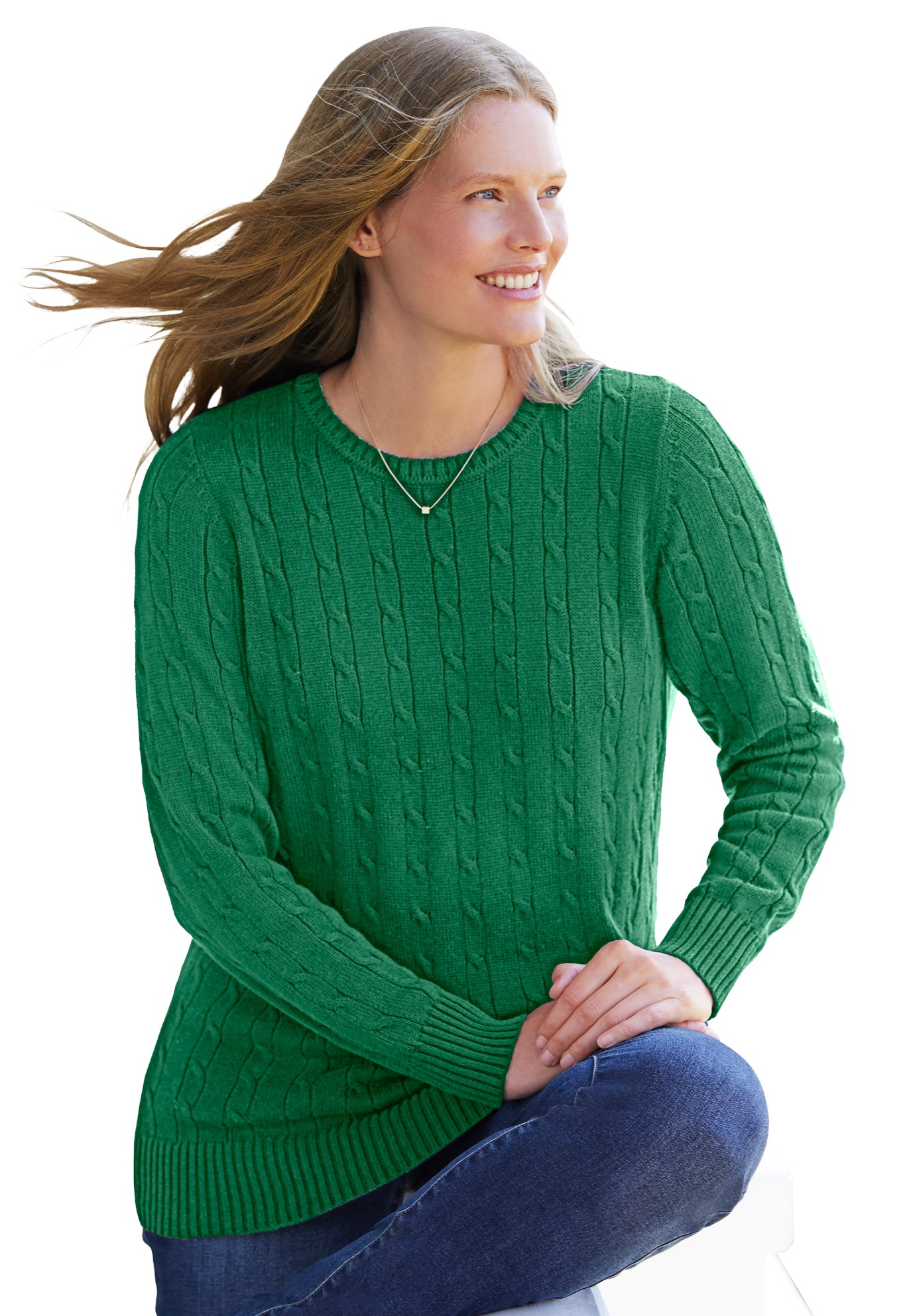 Plus Size Women's Cable Knit Pullover Crewneck Sweater by Woman Within in Emerald (Size L)
