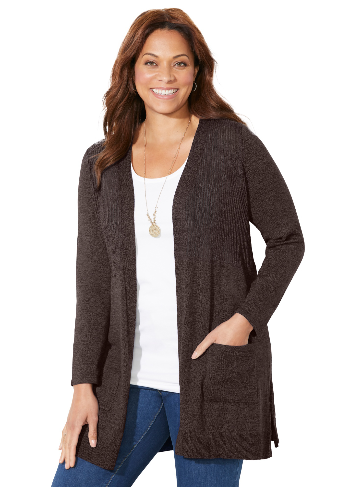 Plus Size Women's Marled Sweater Cardigan by Catherines in Coffee Bean (Size 1X)