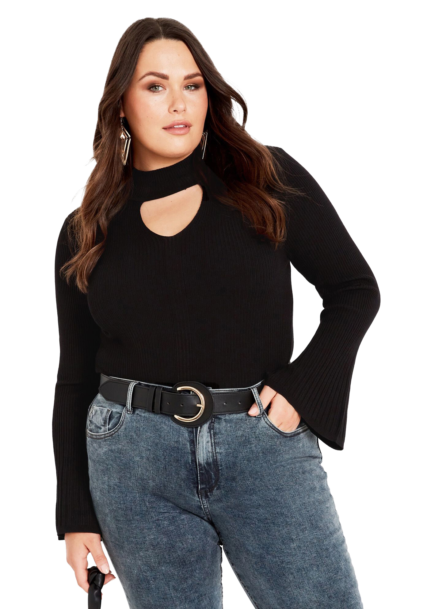 Plus Size Women's Zoe Ribbed Knit Sweater by Avenue in Black (Size 26/28)