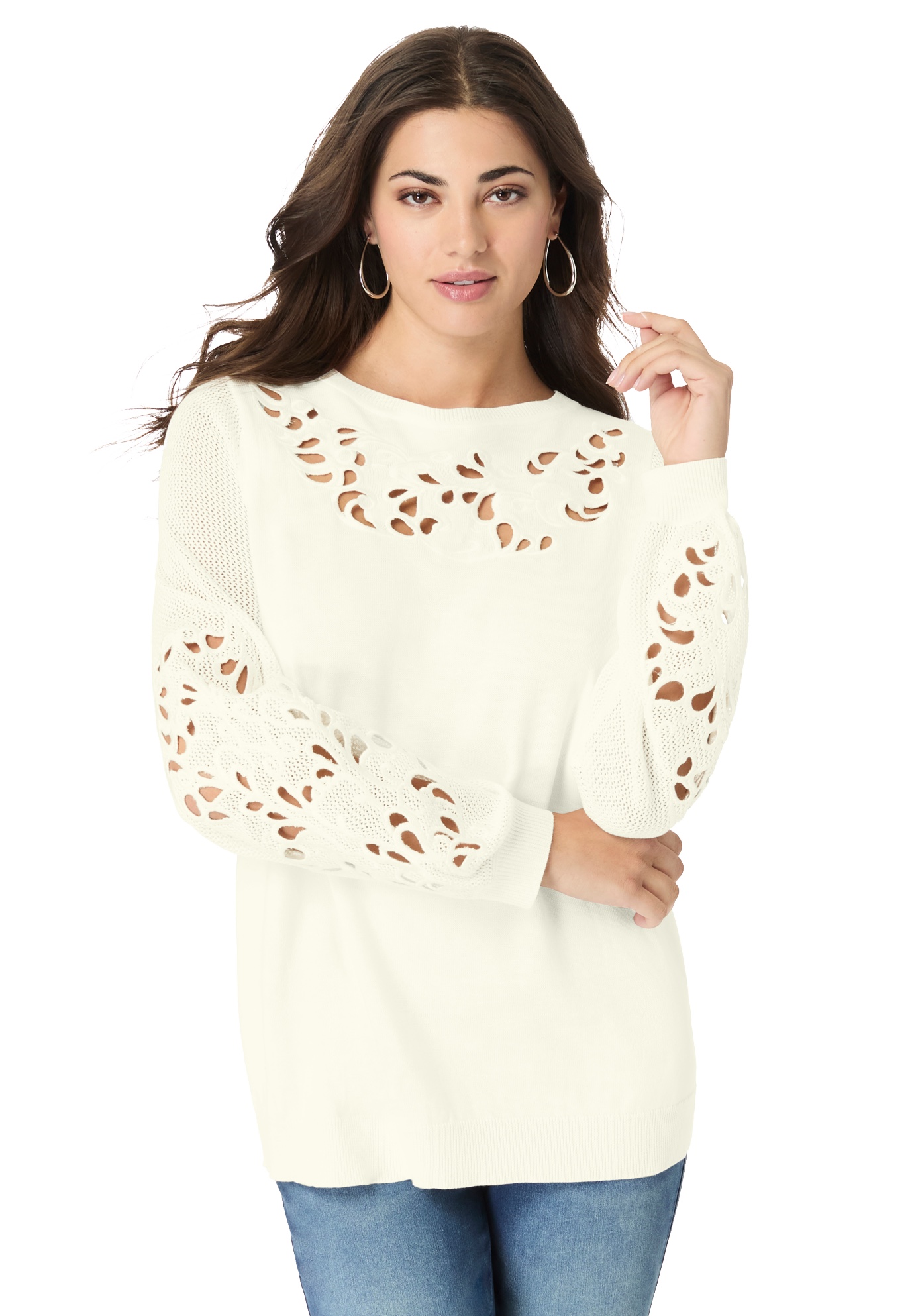 Plus Size Women's Plus Size Pullover Sweater with Cutout Detail by Roaman's in Ivory (Size 22/24)