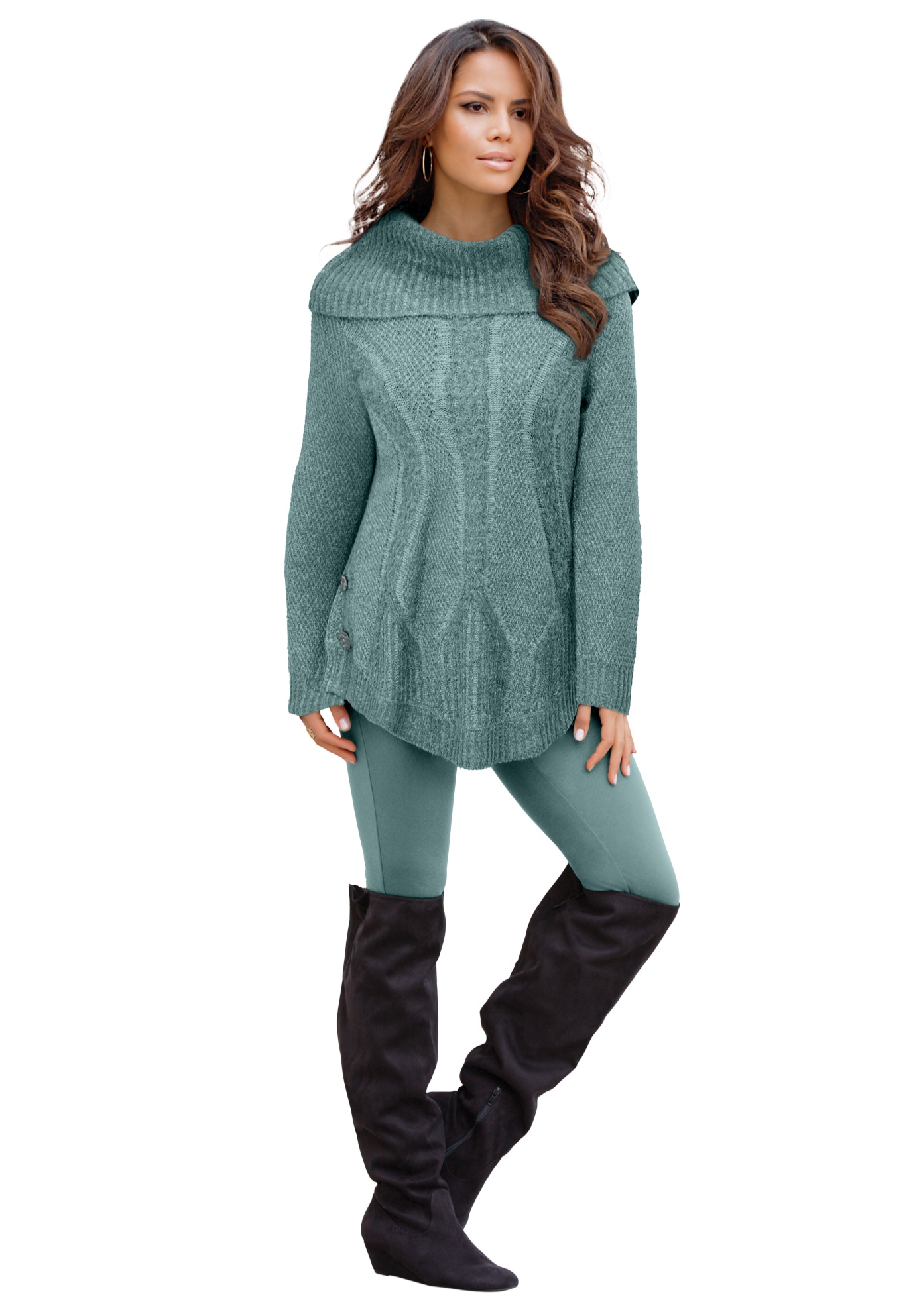 Plus Size Women's Cowl Neck Cable Pullover Sweater by Roaman's in Cool Sage Antique Mint (Size 1X)