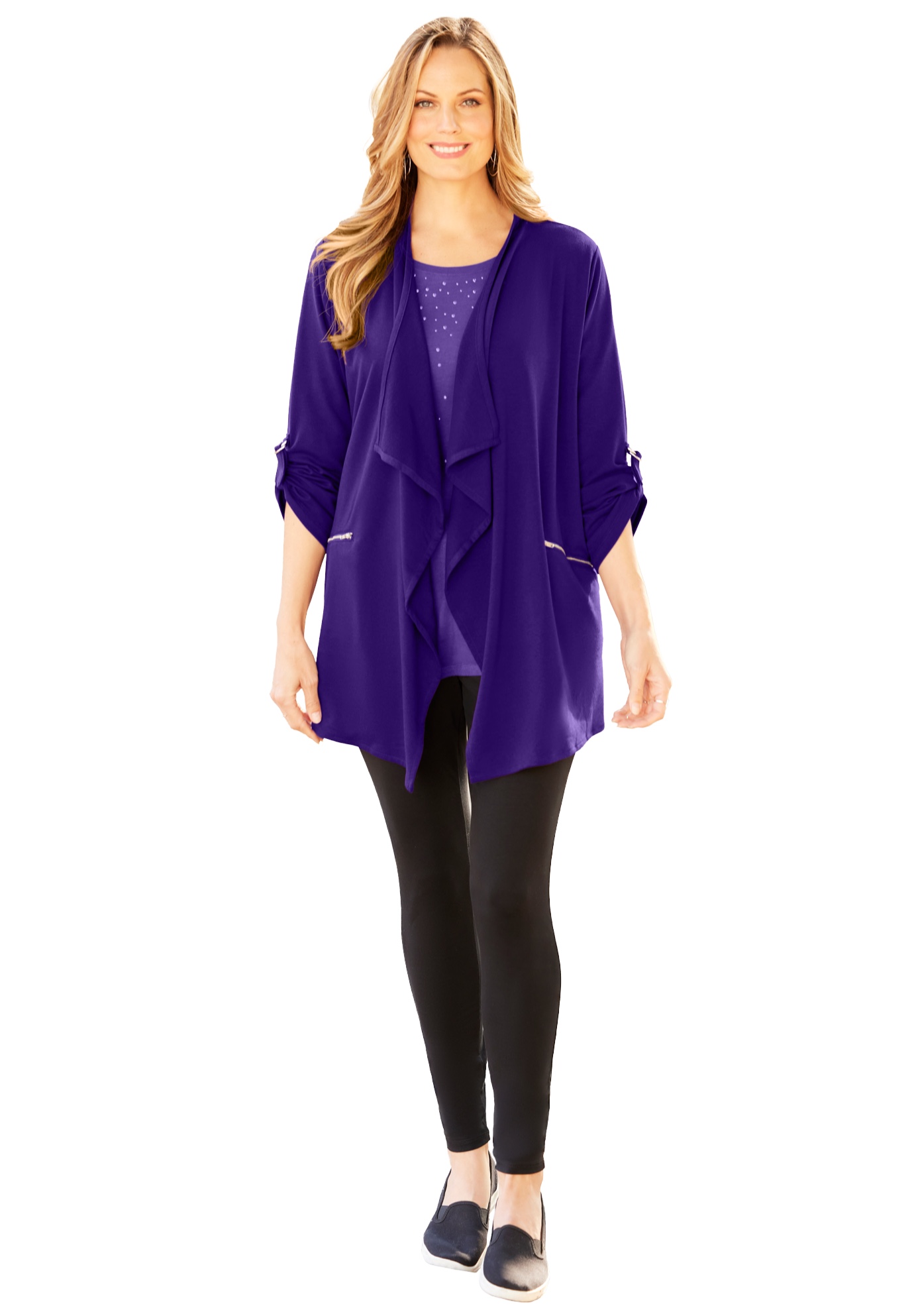 Plus Size Women's Cloud Knit French Terry Drape Front Cardigan by Catherines in Deep Grape (Size 4X)
