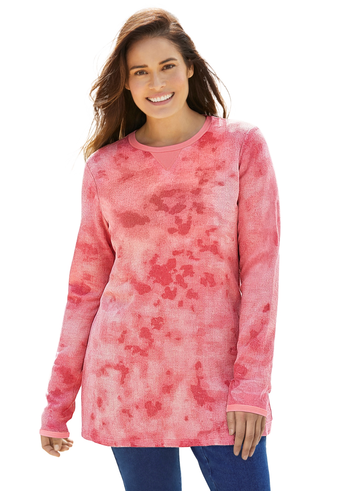 Plus Size Women's Ultra Soft Waffle Thermal Sweatshirt by Woman Within in Coral Tie Dye (Size L)