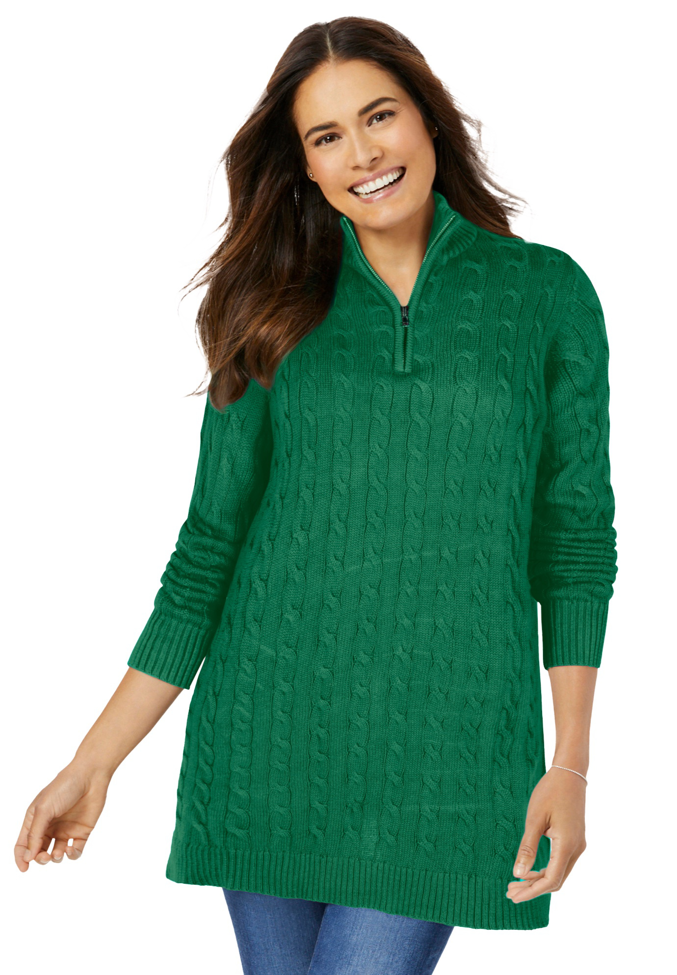 Plus Size Women's Cable Knit Half-Zip Pullover Sweater by Woman Within in Emerald (Size L)