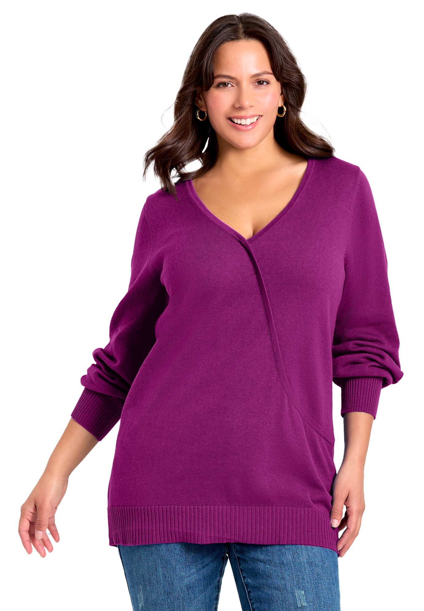 Plus Size Women's Faux Wrap Pull Over Sweater by Avenue in Berry Pink (Size 30/32)
