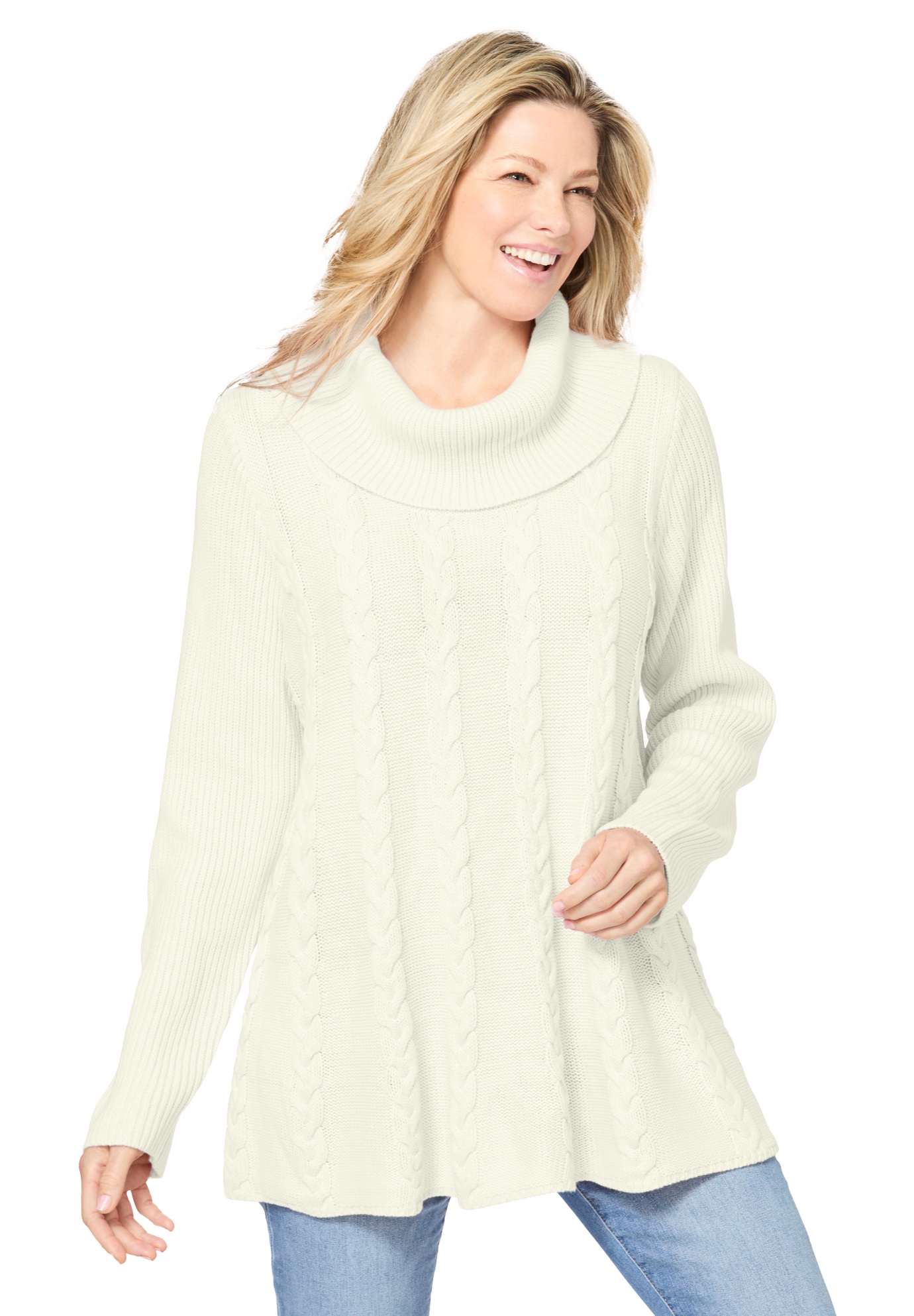 Plus Size Women's Cowl Neck Cable Knit Swing Sweater by Woman Within in Ivory (Size L)