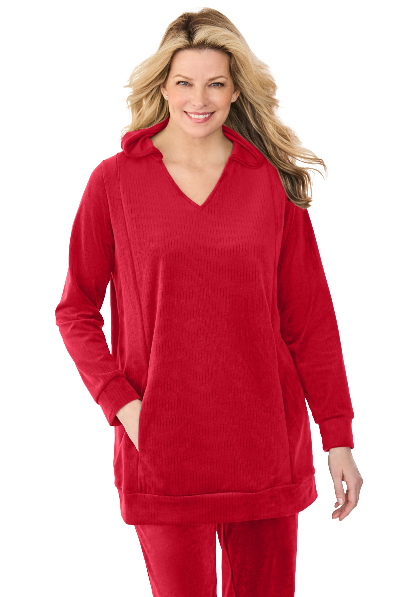Plus Size Women's Velour Hoodie Sweatshirt by Woman Within in Classic Red (Size 2X)
