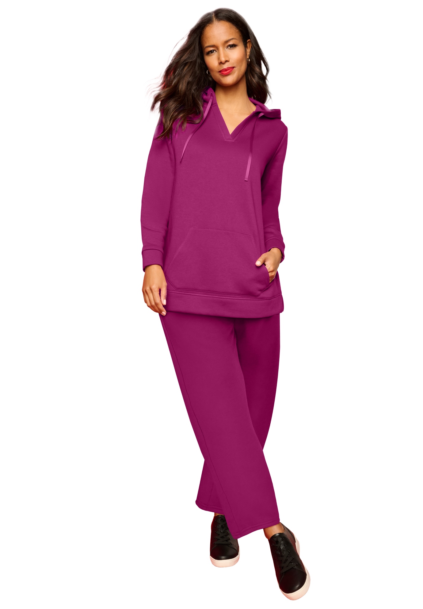 Plus Size Women's Comfort+ Fleece V Neck Hooded Sweatshirt by Roaman's in Raspberry (Size 22/24)