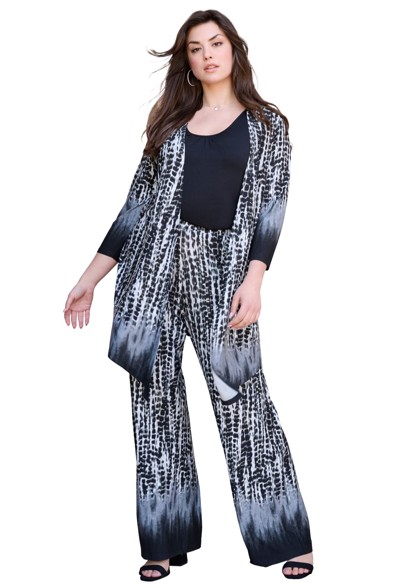 Plus Size Women's Ultra Drape Cardigan by Roaman's in Black Tie Dye Border (Size 14/16)