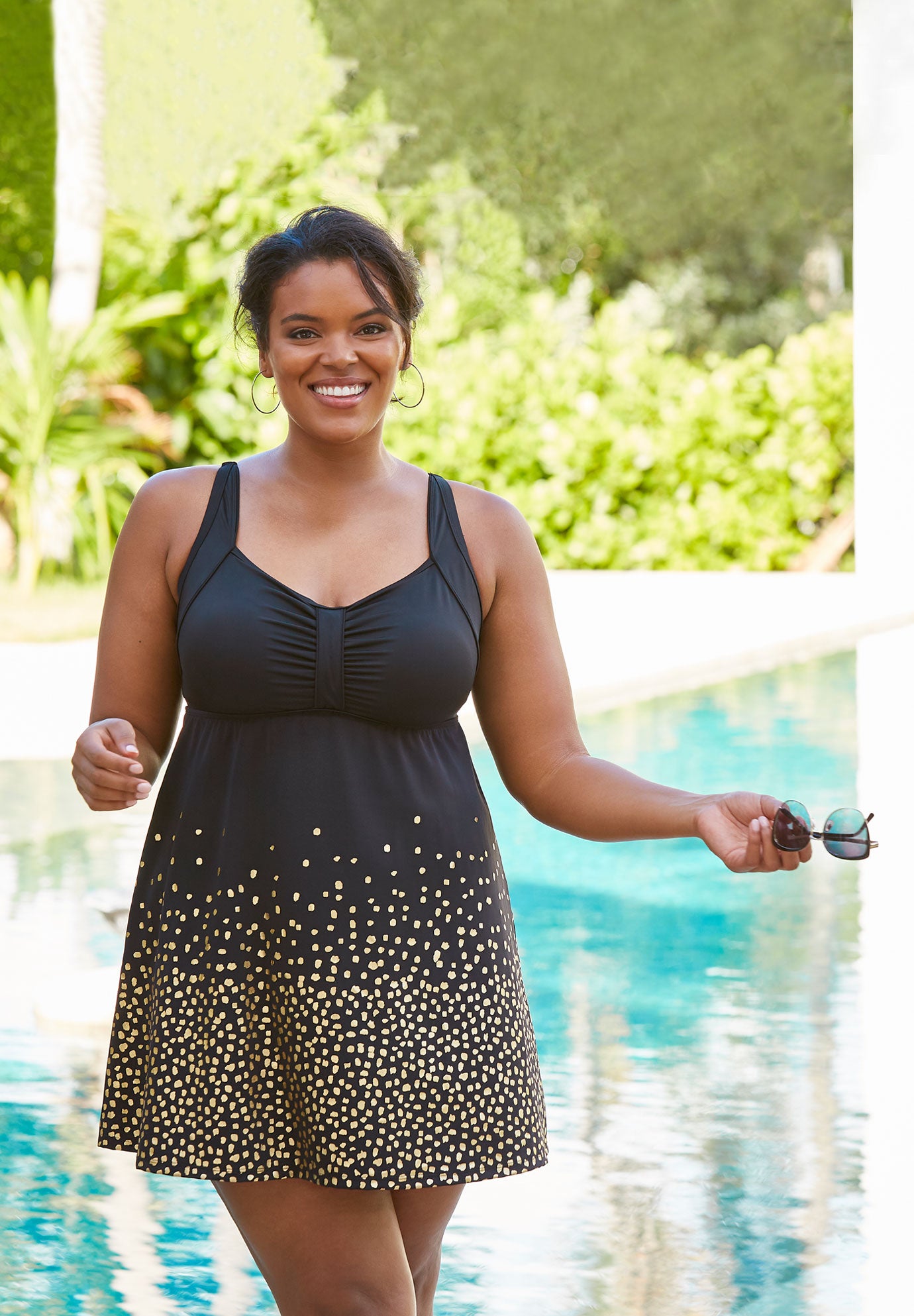 Plus Size Women's Retro Swim Dress by Swim 365 in Gold Foil (Size 20) Swimsuit