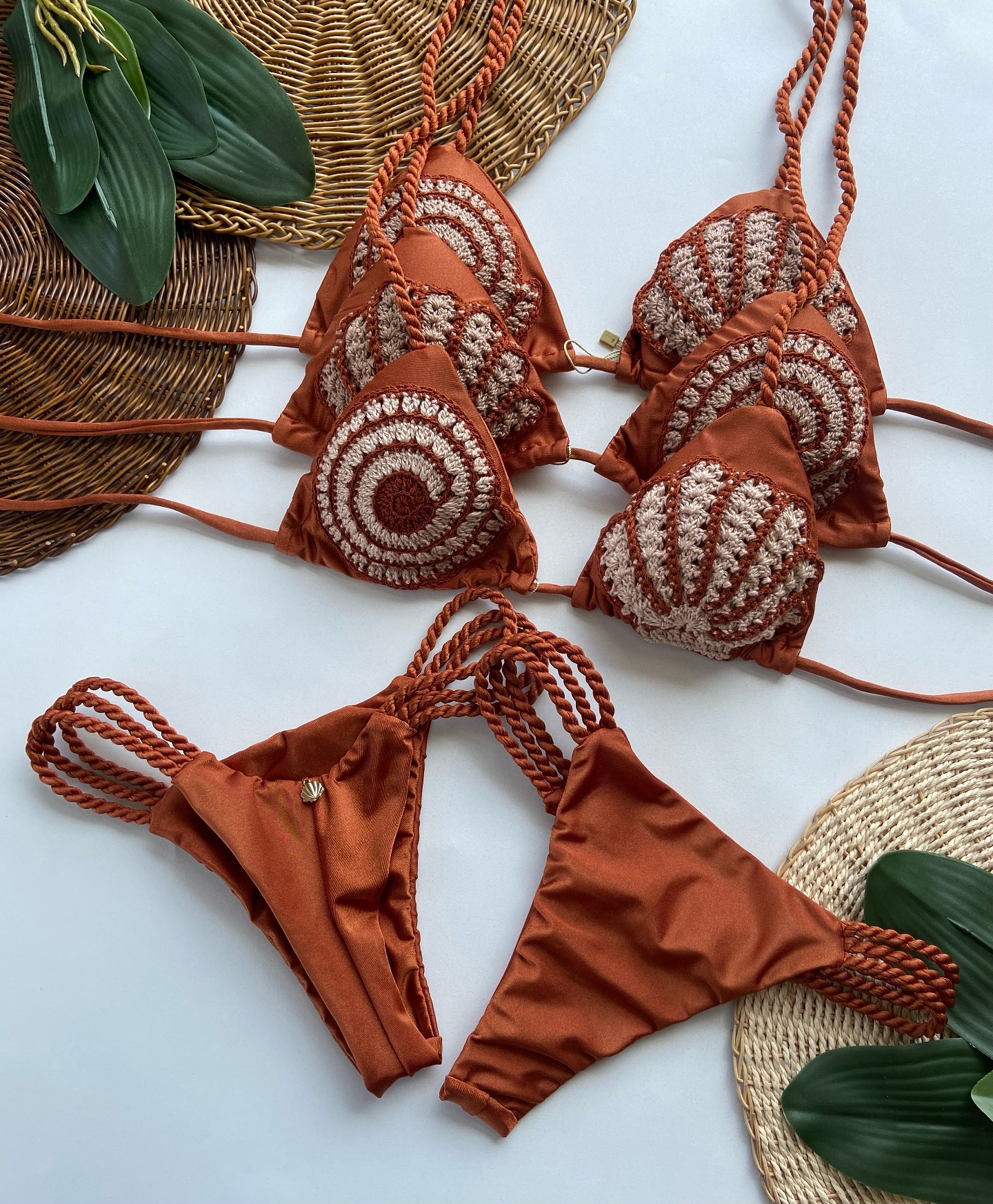 Sexy Bikini Bandeau Women Swimsuit, High Waist Bikinis Set, Ribbed Bathing Suit, Shell Swimming Suit l