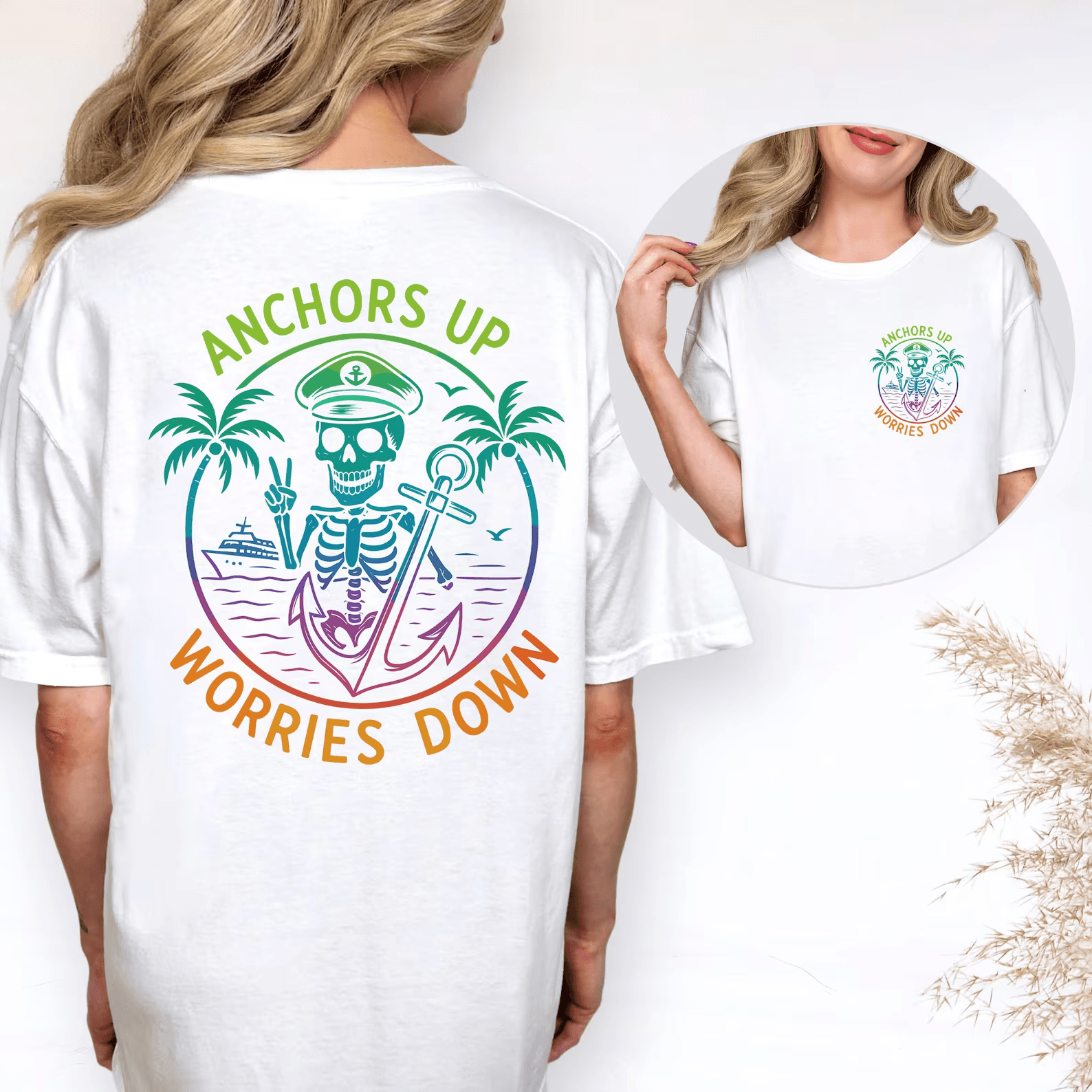 Anchors Up Worries Down Cruise Shirt Custom Comfort Colors Family Matching Tee light Orange 2xl t Shirt