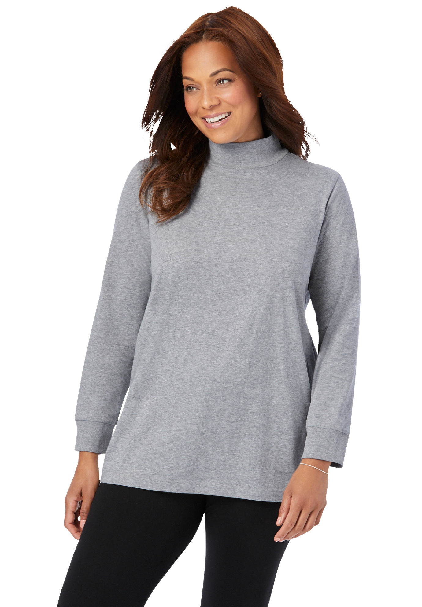 Plus Size Women's Perfect Long-Sleeve Mockneck Tee by Woman Within in Heather Grey (Size L) Shirt