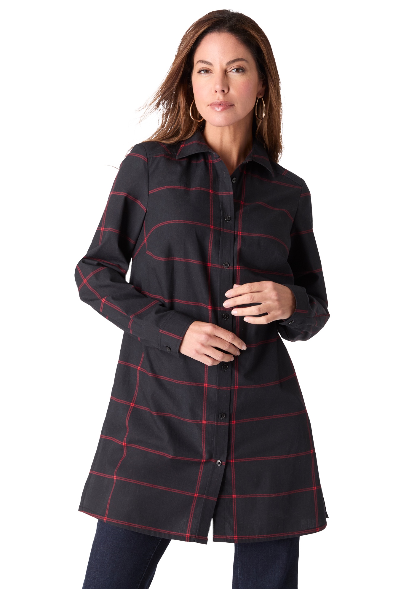 Plus Size Women's Plus Size Kate Long Sleeve Tunic Easy Cotton-Blend Button-Front Shirt by Roaman's in Black Windowpane (Size 26 W) Button Down Tunic