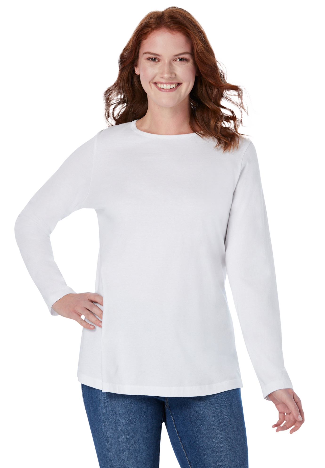 Plus Size Women's Perfect Long-Sleeve Crewneck Tee by Woman Within in White (Size 1X)
