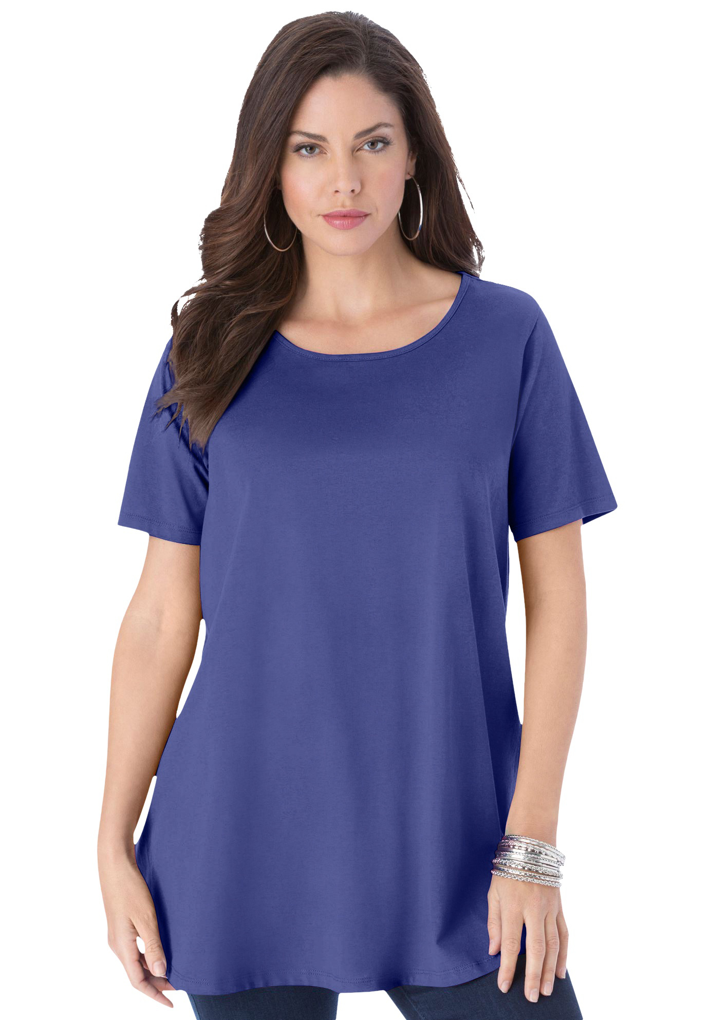 Plus Size Women's Plus Size Cotton Ultimate Swing Tee with Keyhole Back by Roaman's in Ultra Blue (Size 4X) Short Sleeve T-Shirt