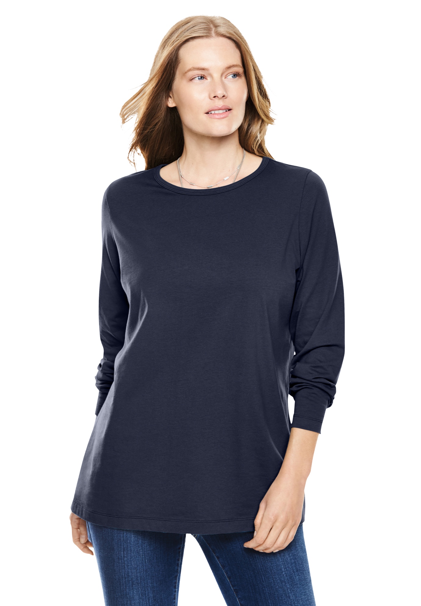Plus Size Women's Perfect Long-Sleeve Crewneck Tee by Woman Within in Navy (Size 4X)