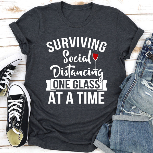Surviving Social Distancing One Glass At A Time Sport Grey L