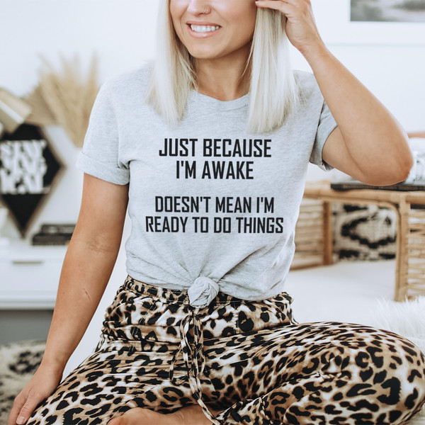 Just Because I'm Awake Doesn't Mean I'm Ready To Do Things Tee Heather Prism Peach M