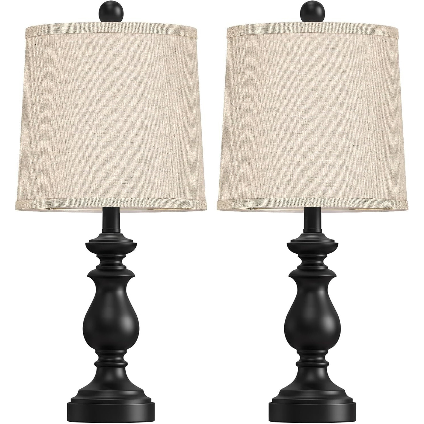 22 in. Black Finish Table Lamp with Black Shade, Sturdy Table Lamp for Living Rooms and Bedrooms
