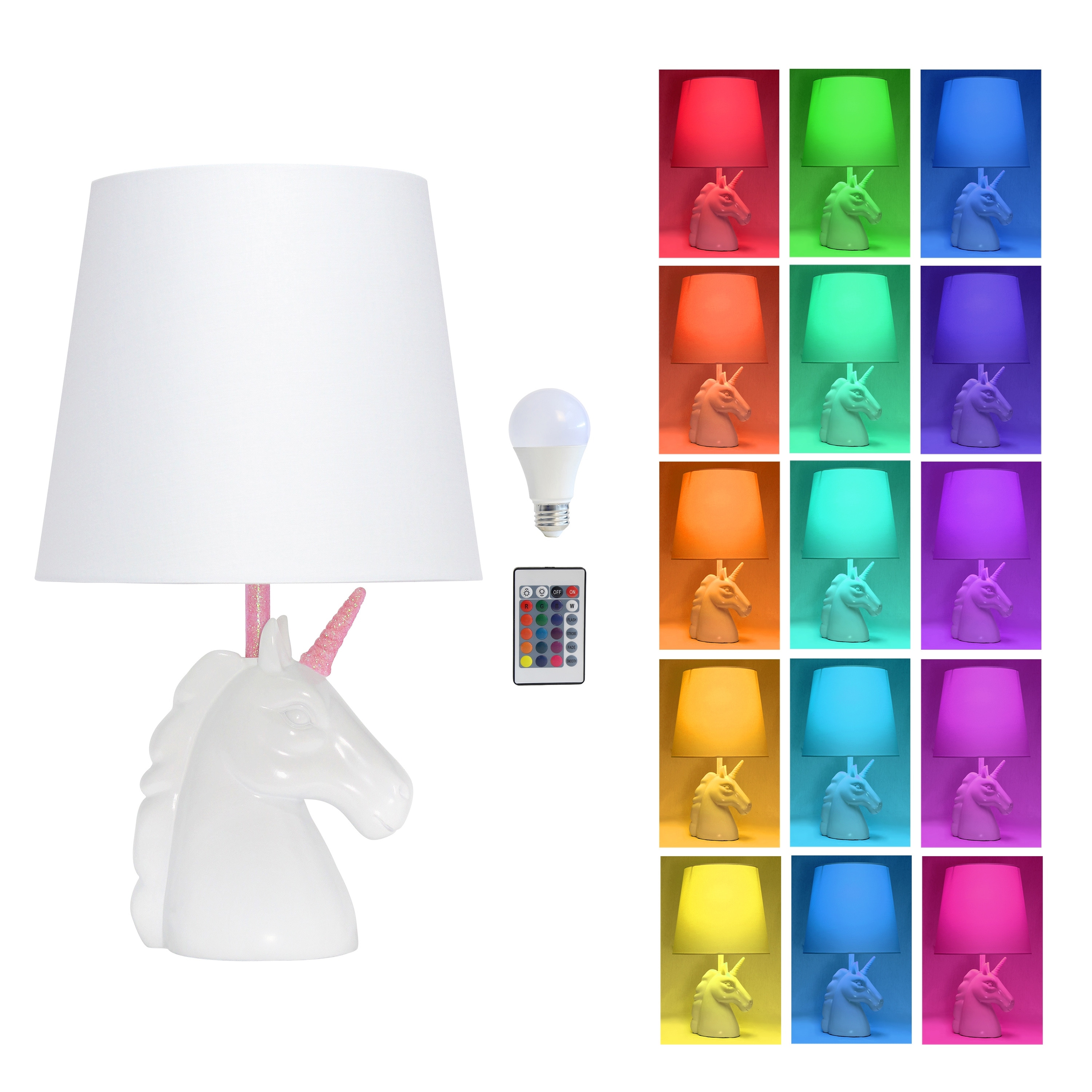 Simple Designs 15.5" Sparkling Unicorn Table Lamp With Color Changing Led Bulb Included