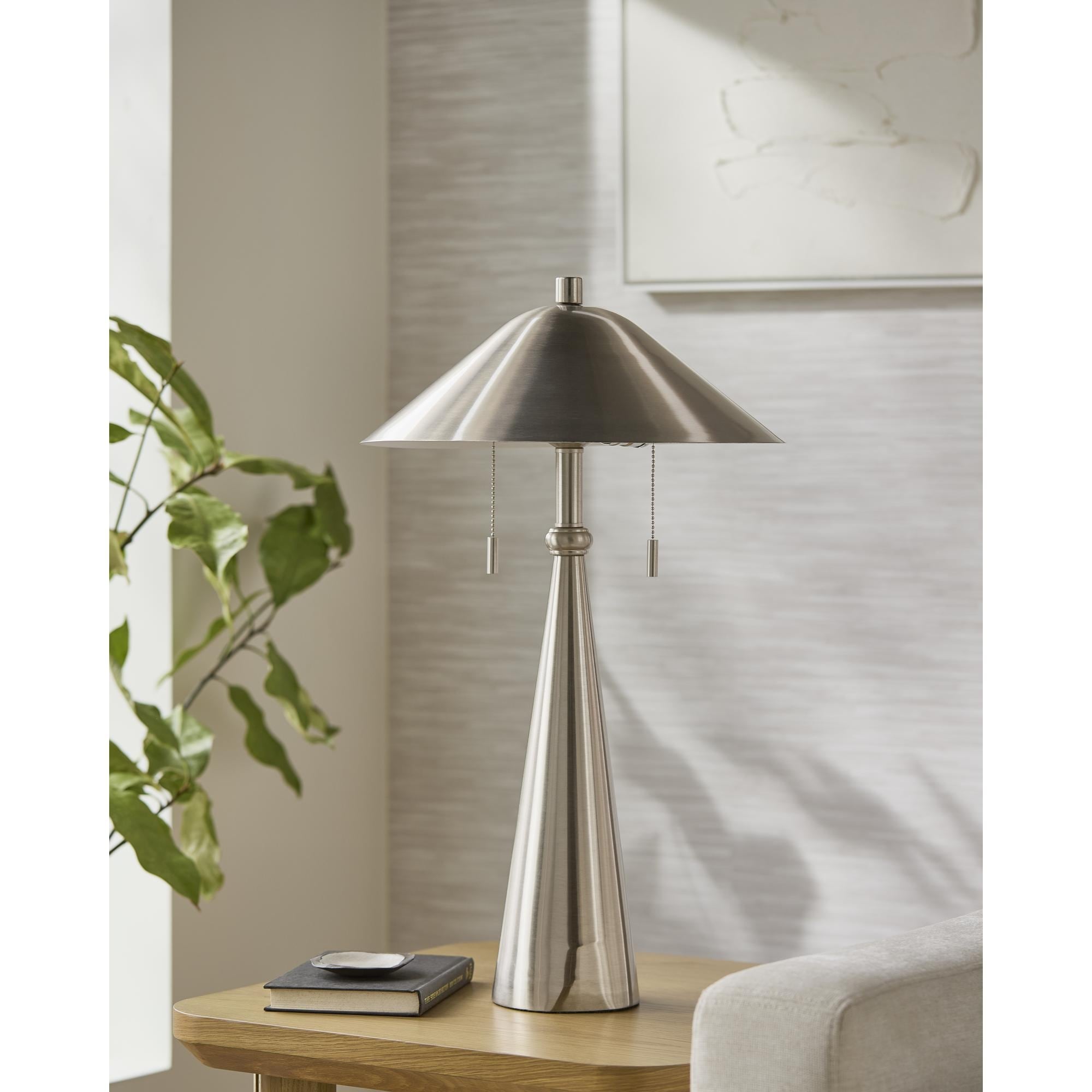 Creekwood Home 10.5" Iconic Duo Mini Sand Nickel Table Lamp Two Pack Set, for End Tables, Nightstands, Offices