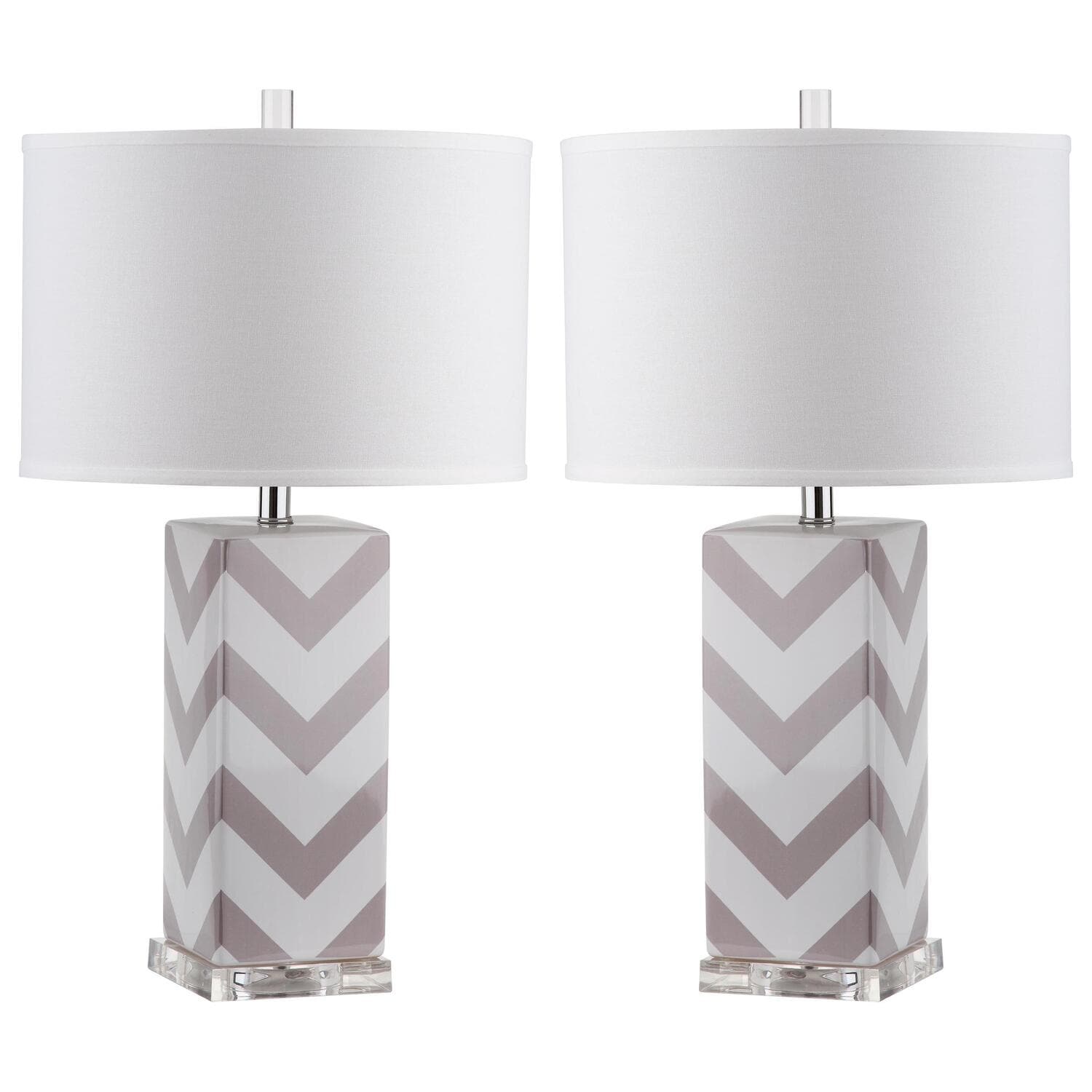 Mid Century Table Lamp Set of 2 - Grey Stripe Desk Lamp for Bedroom Living Room Office - 27 inch