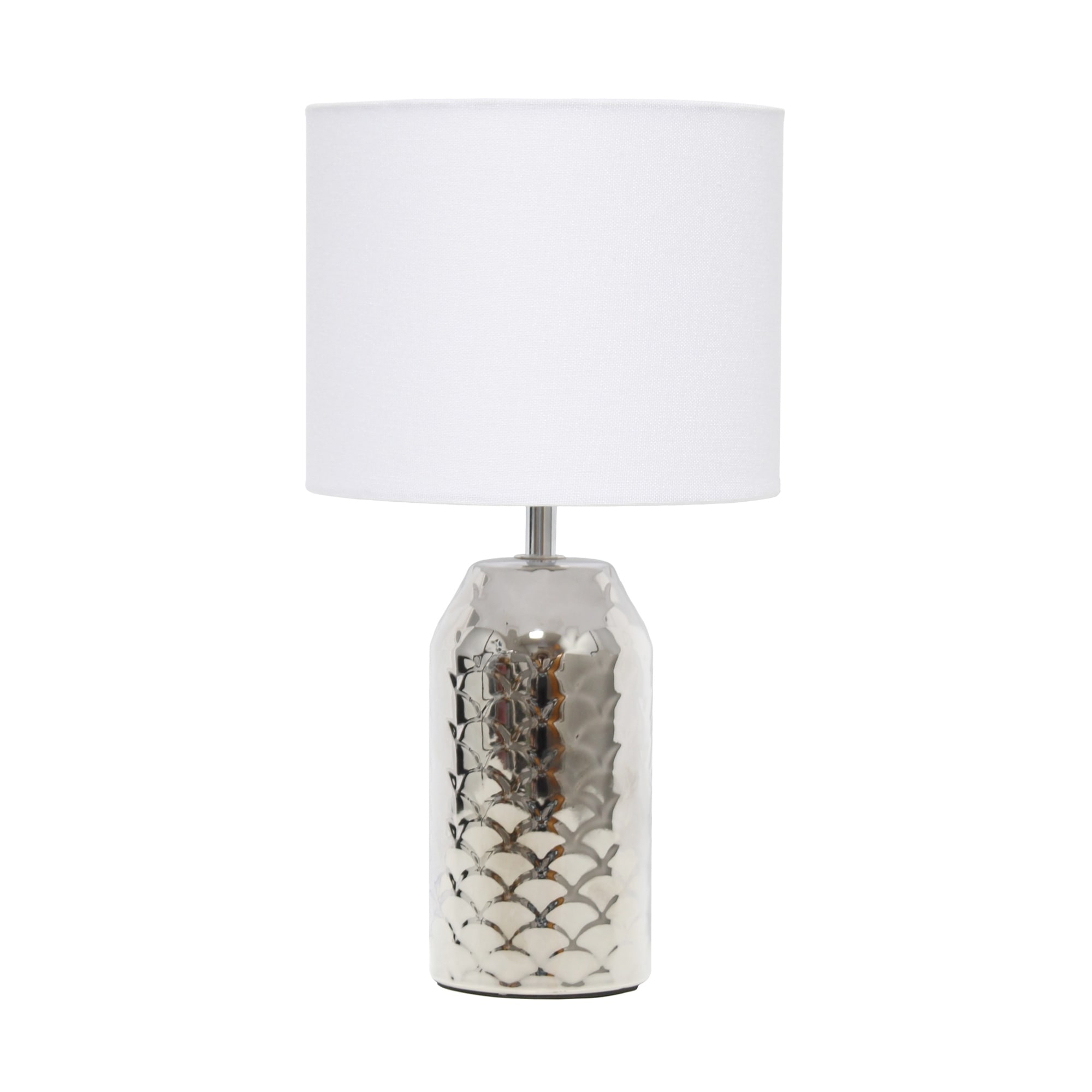Fishscale Porcelain Table Lamp with White Drum Shade - 13.5" - Chrome Finished