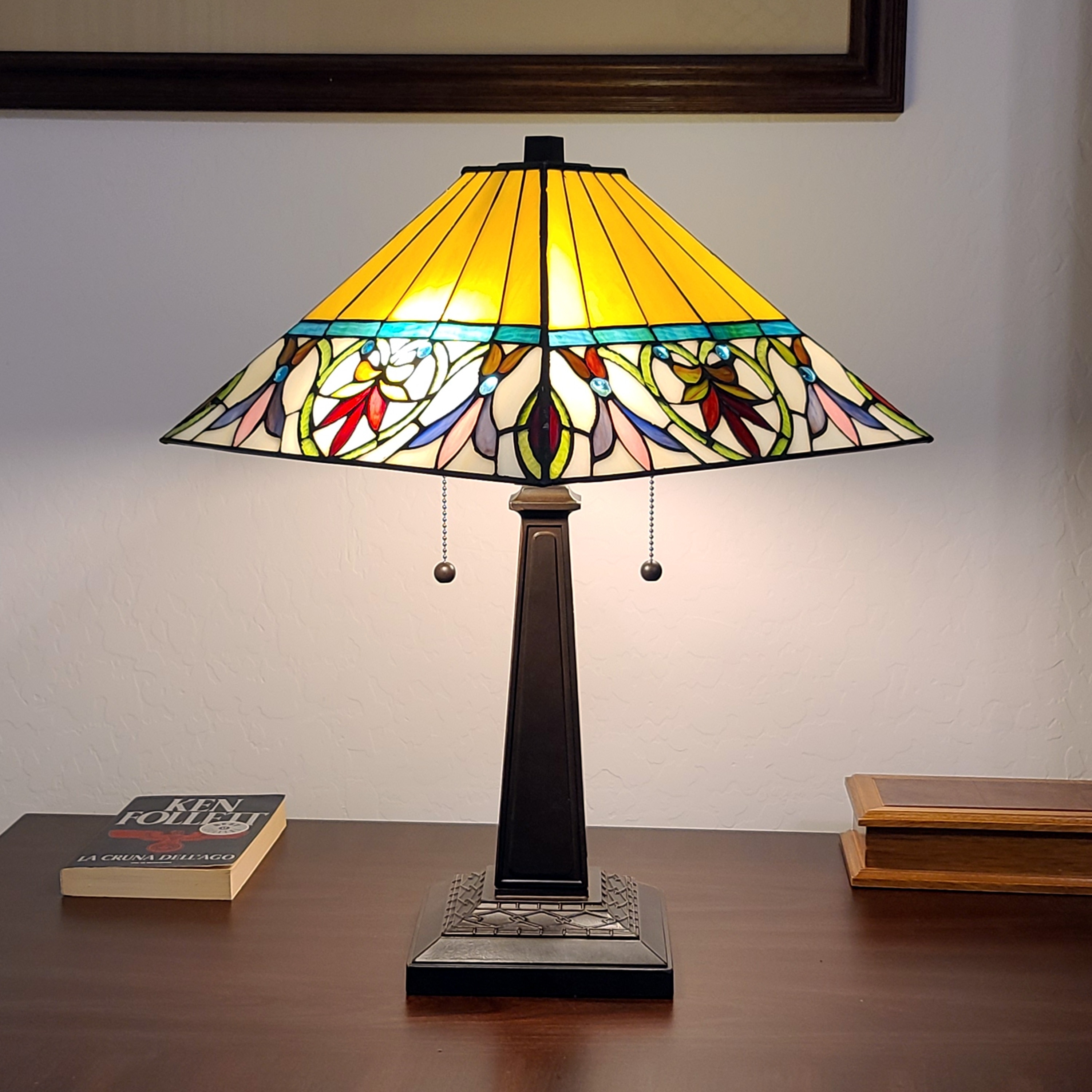 Tiffany Style Table Lamp Mission 22" Tall Stained Glass Decor Bedroom Night Stand Handmade Amora Lighting
