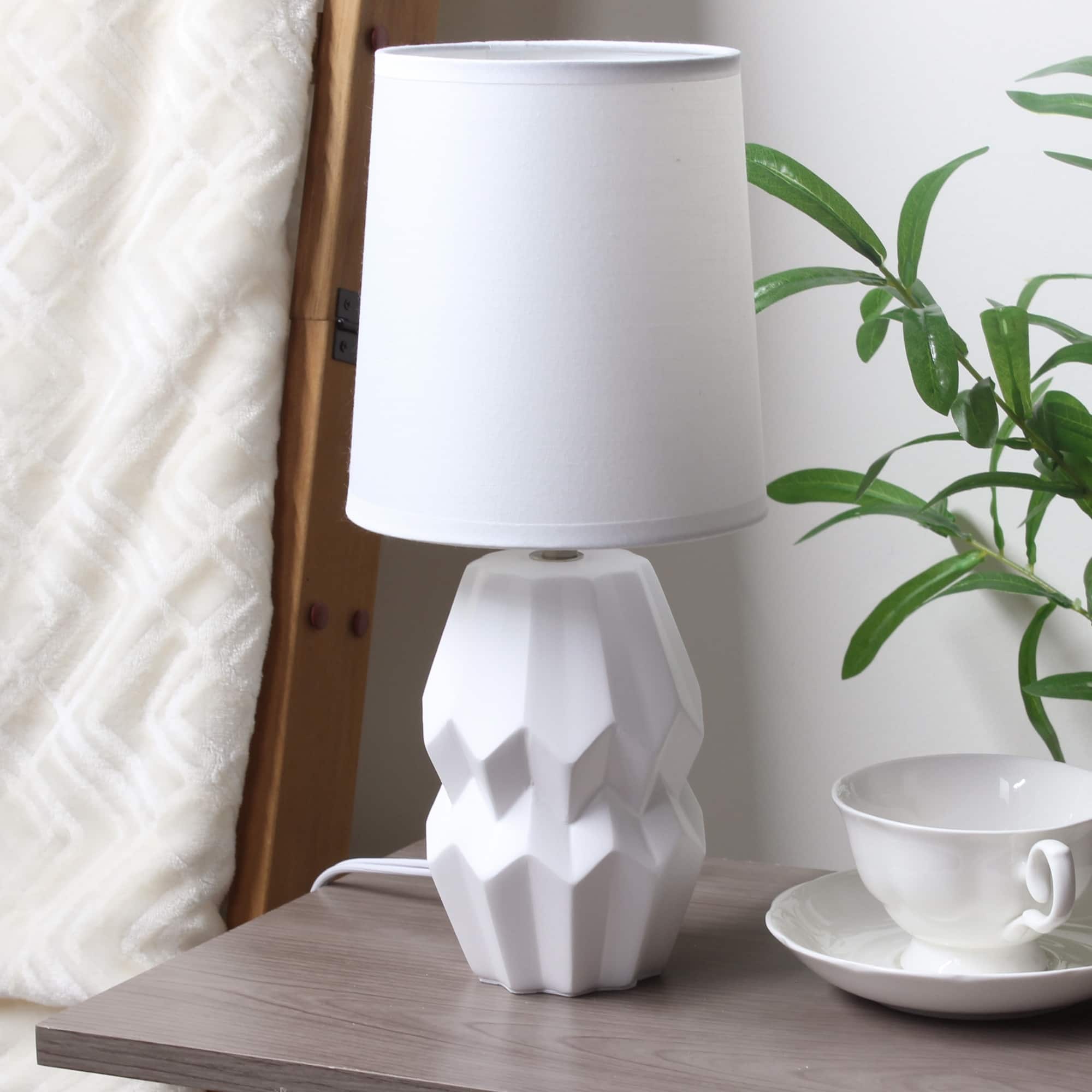 Geometric Ceramic Table Lamp with Drum Shade - 19.5" - White