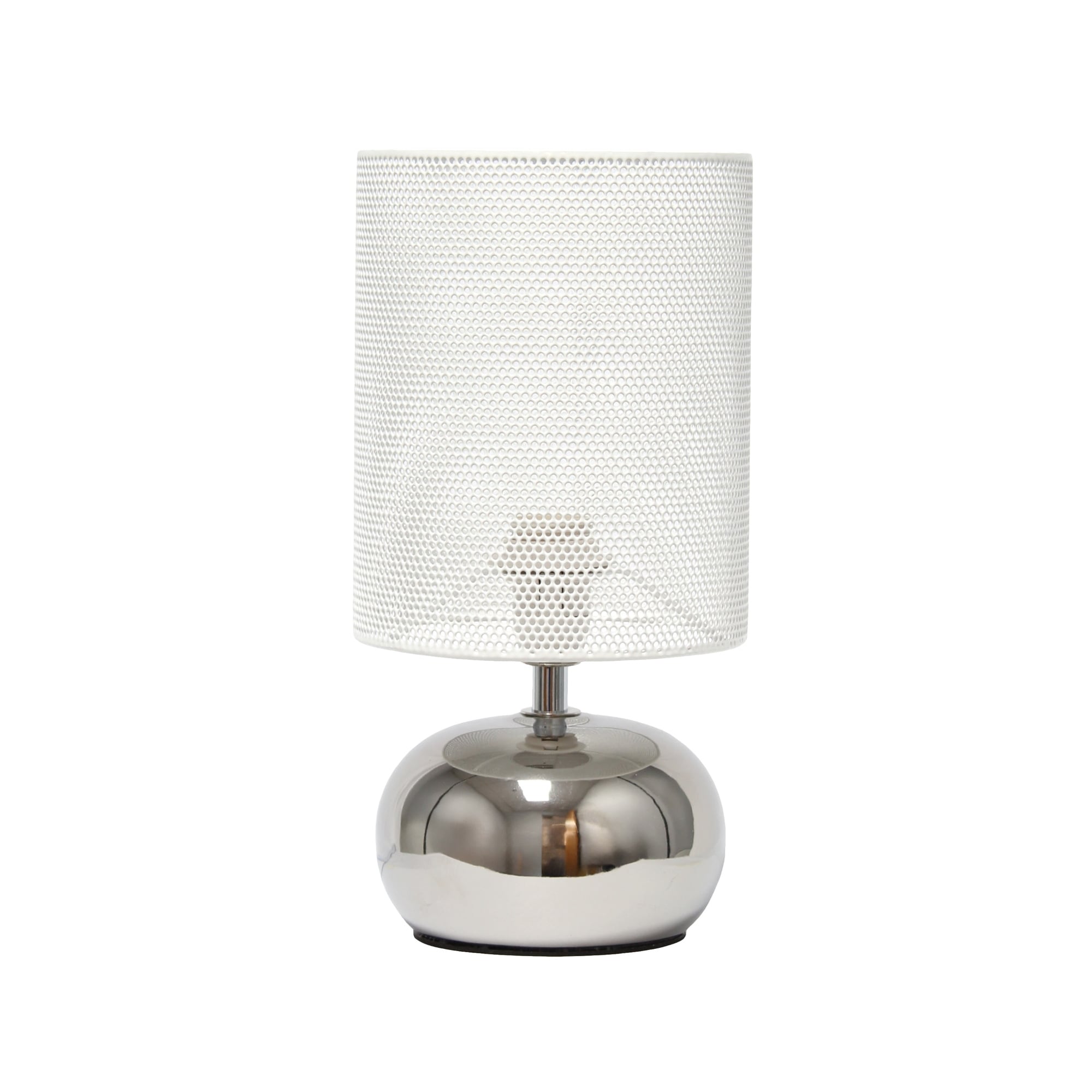 Mini Ceramic Table Lamp with White Mesh Shade - 10" - Chrome Finish