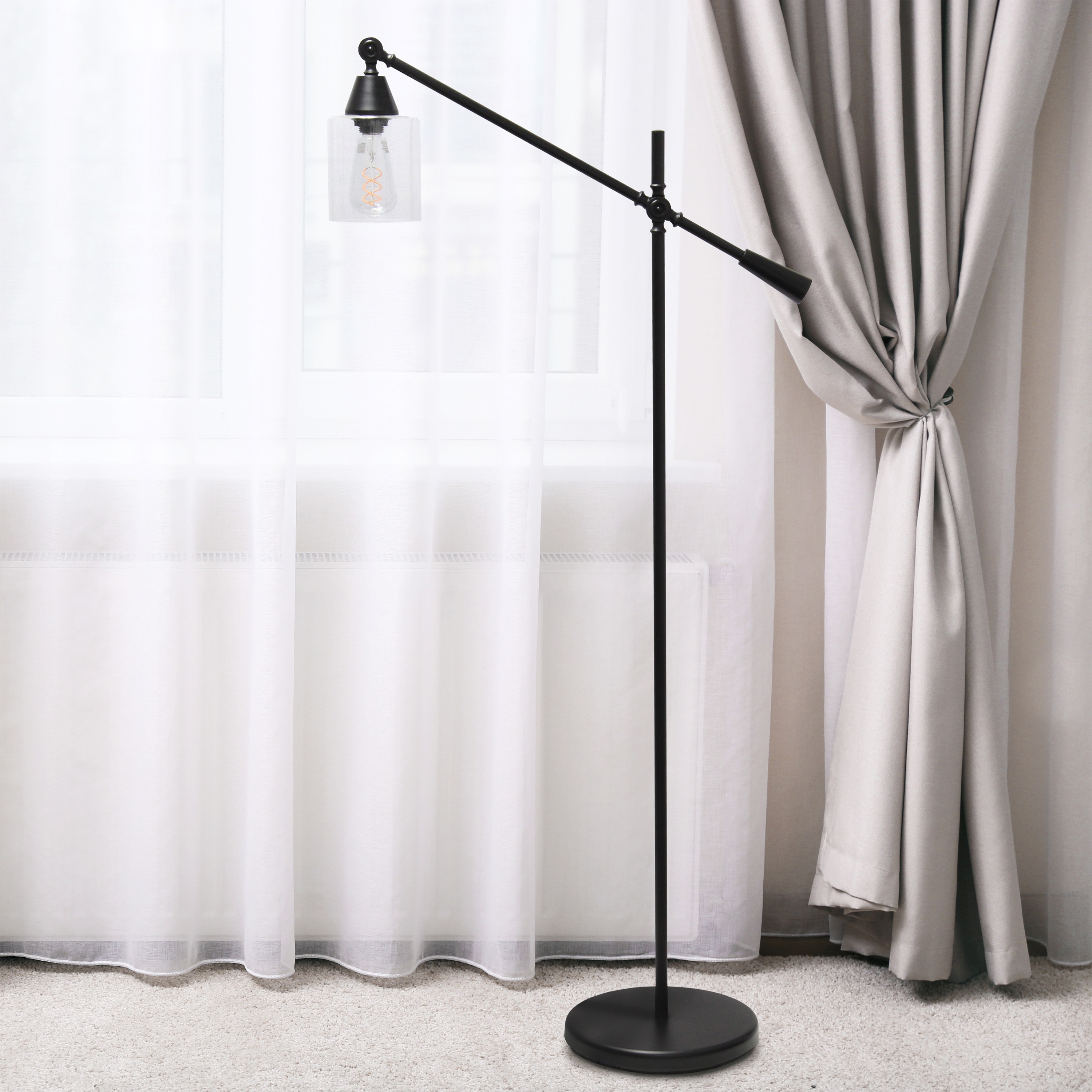 Elegant Designs Pivot Arm Floor Lamp with Glass Shade, Black - 30"L x 11"W x 56"H