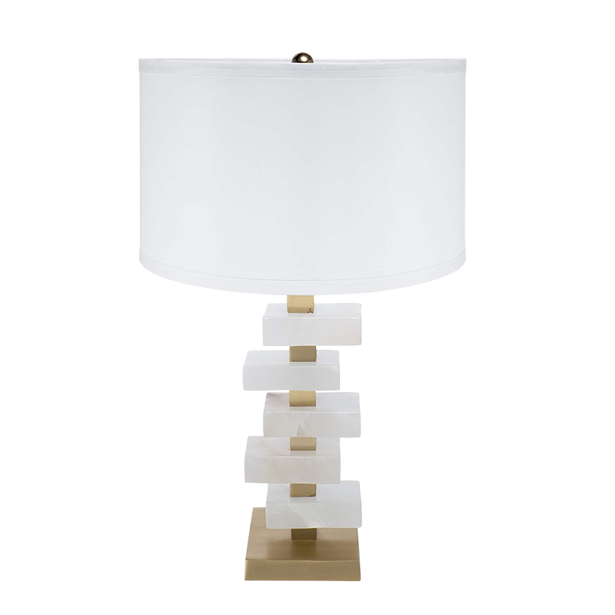 D15x26.7" White and Gold Alabaster Slab Table Lamp
