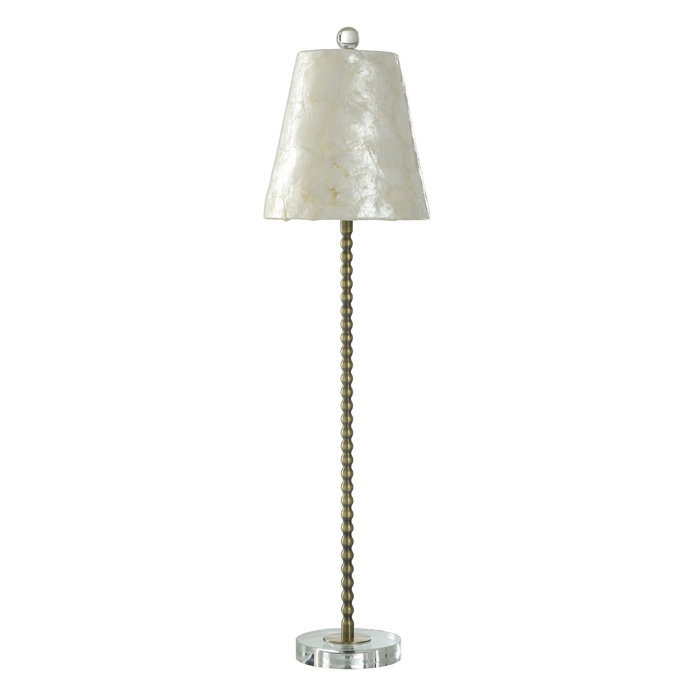Capiz Slim Buffet Lamp - Aged Brass Finish on Skinny Beaded Body - Ivory Capiz Shade