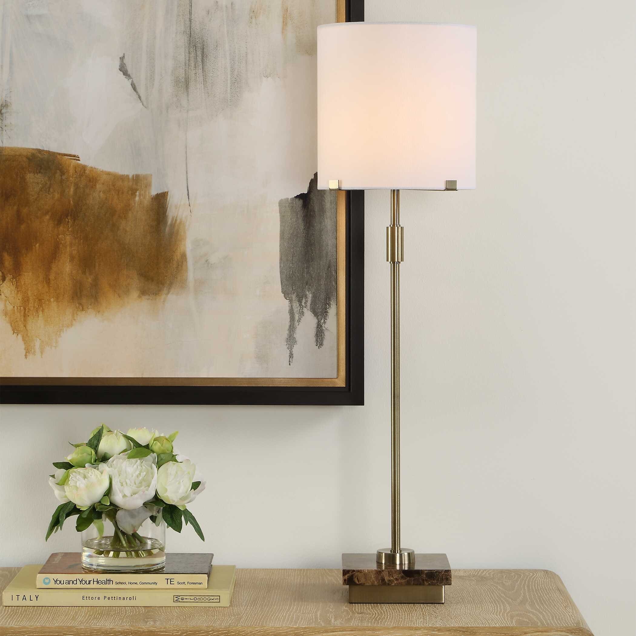 Silver Orchid Brown Marble and Metal Buffet Lamp.