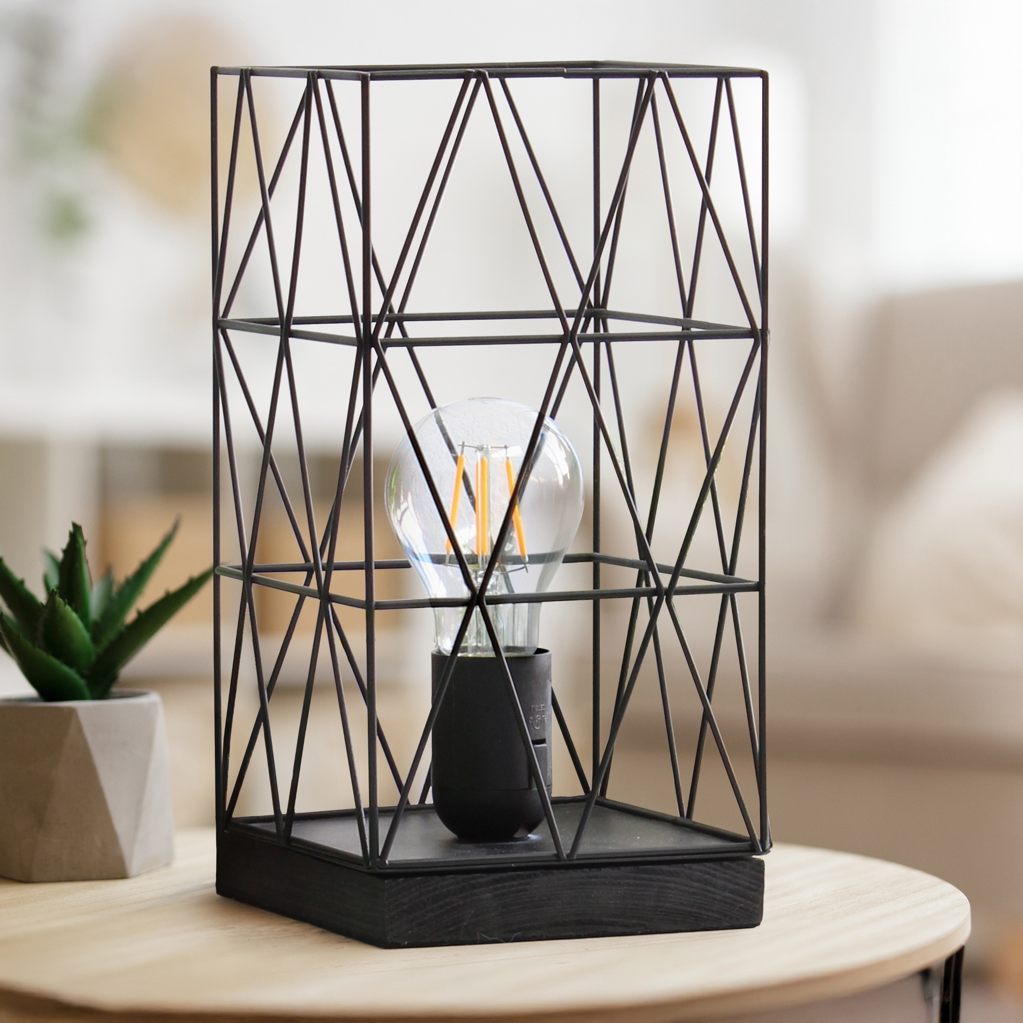 Geometric Table Lamp With Long Drum Shade - 10.5" - Gray
