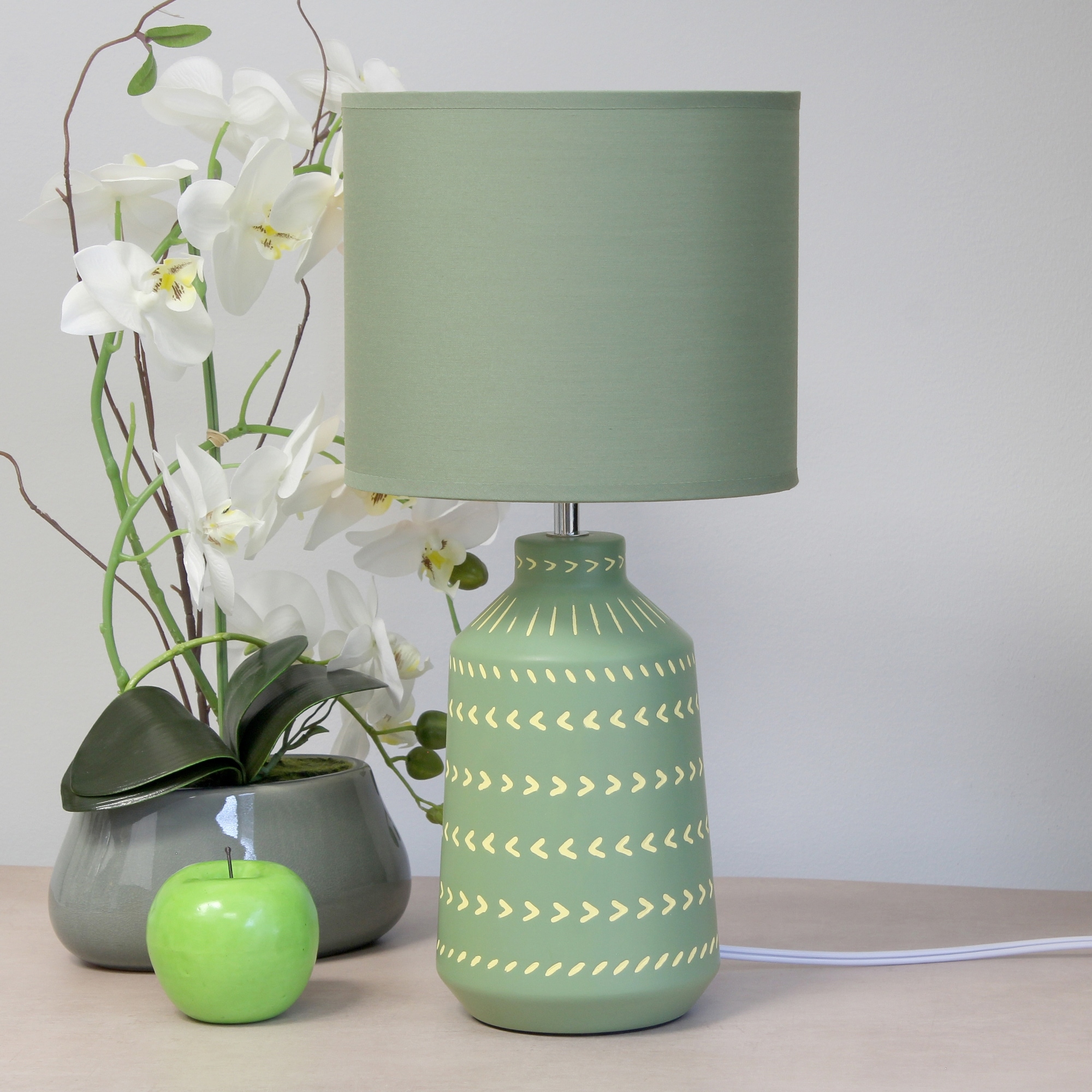Tribal Style Hand Painted Ceramic Table Lamp with Drum Shade - 17" - Green